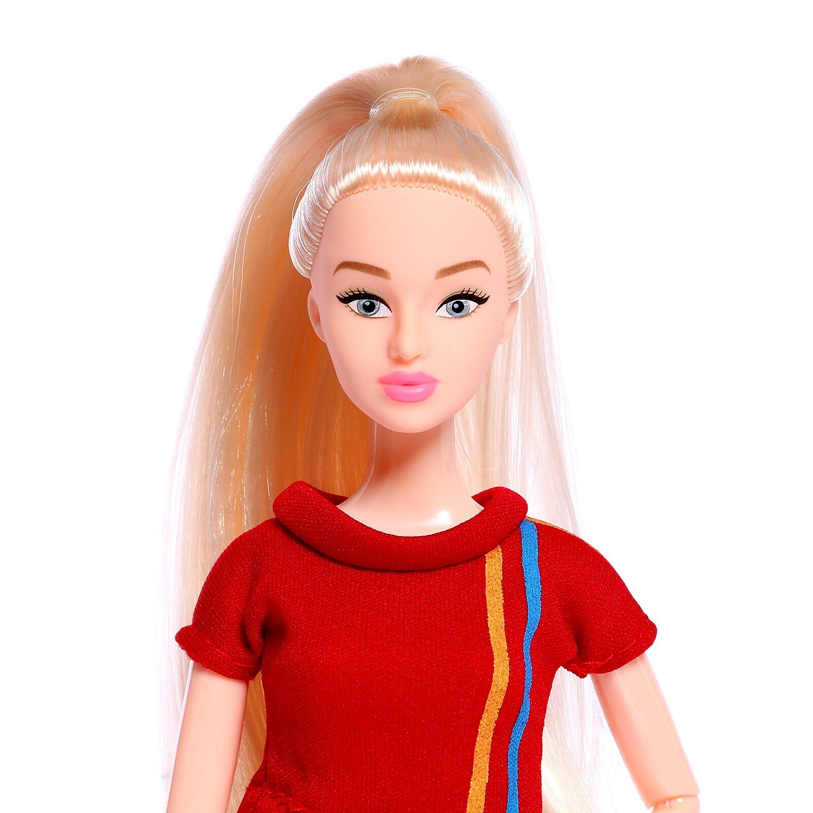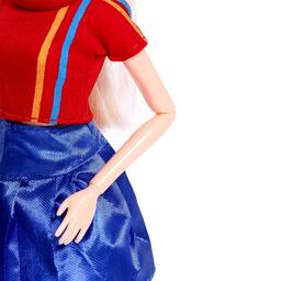 Стильная красавица в фирменном спортивном костюмчике ждёт вас для весёлой игры. У модницы шарнирные руки и ноги, а также густые волосы. Заплетите вместе с ребёнком длинные пряди куклы в косичку или сделайте стильную причёску! Пофантазируйте и придумайте для неё свой наряд.
