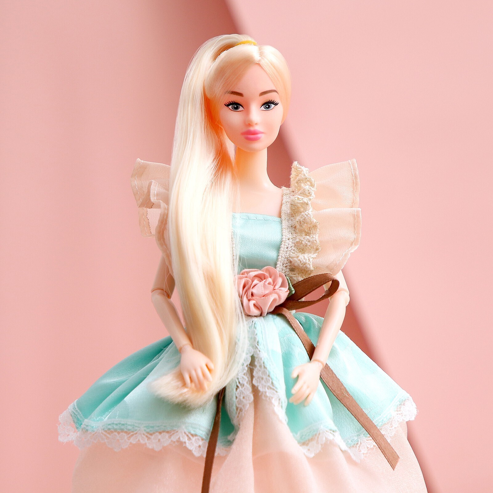 Кукла-модель шарнирная «Нежные мечты», в бежево-бирюзовом платье