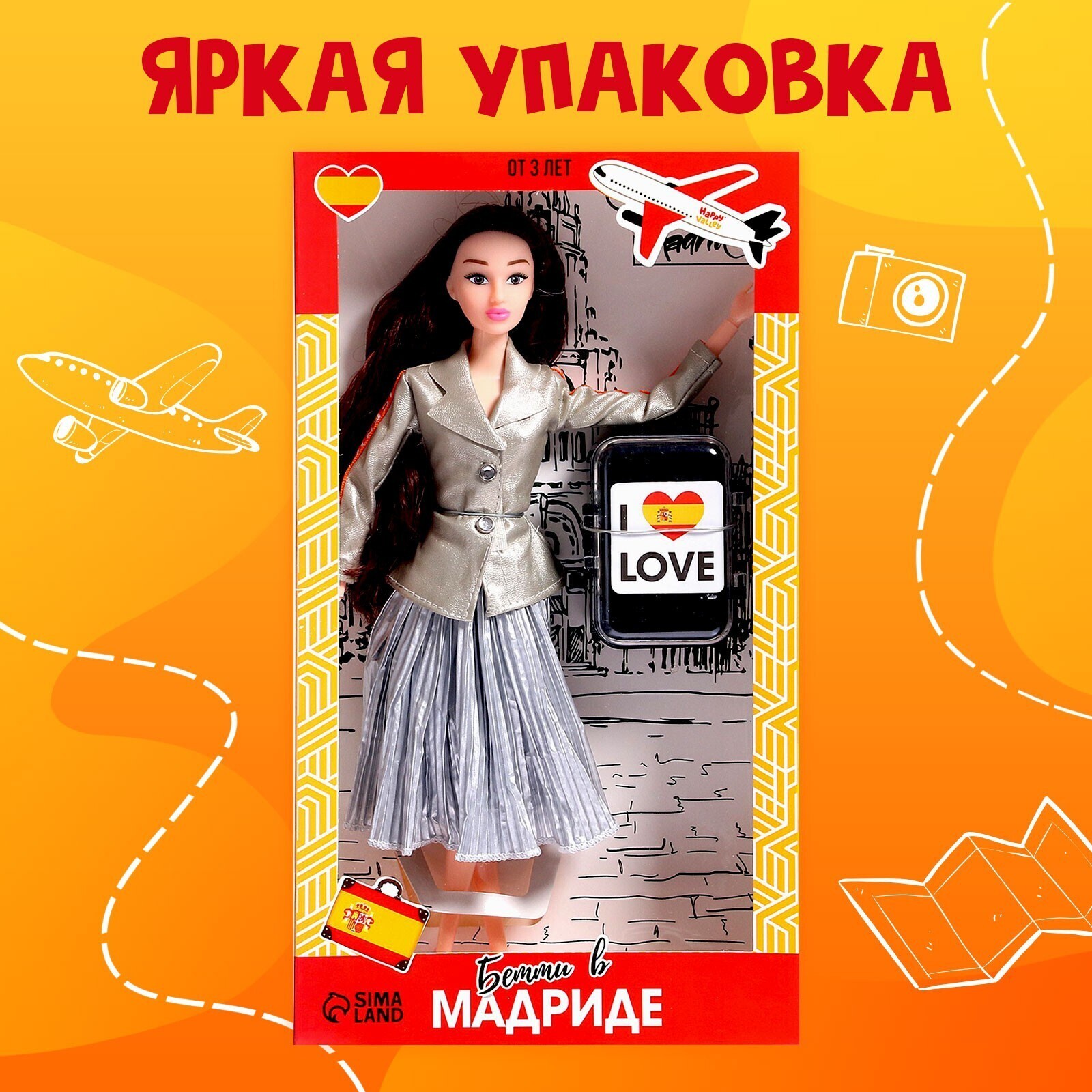Кукла-модель шарнирная «Бэтти в Мадриде» с аксессуарами, серия Вокруг света