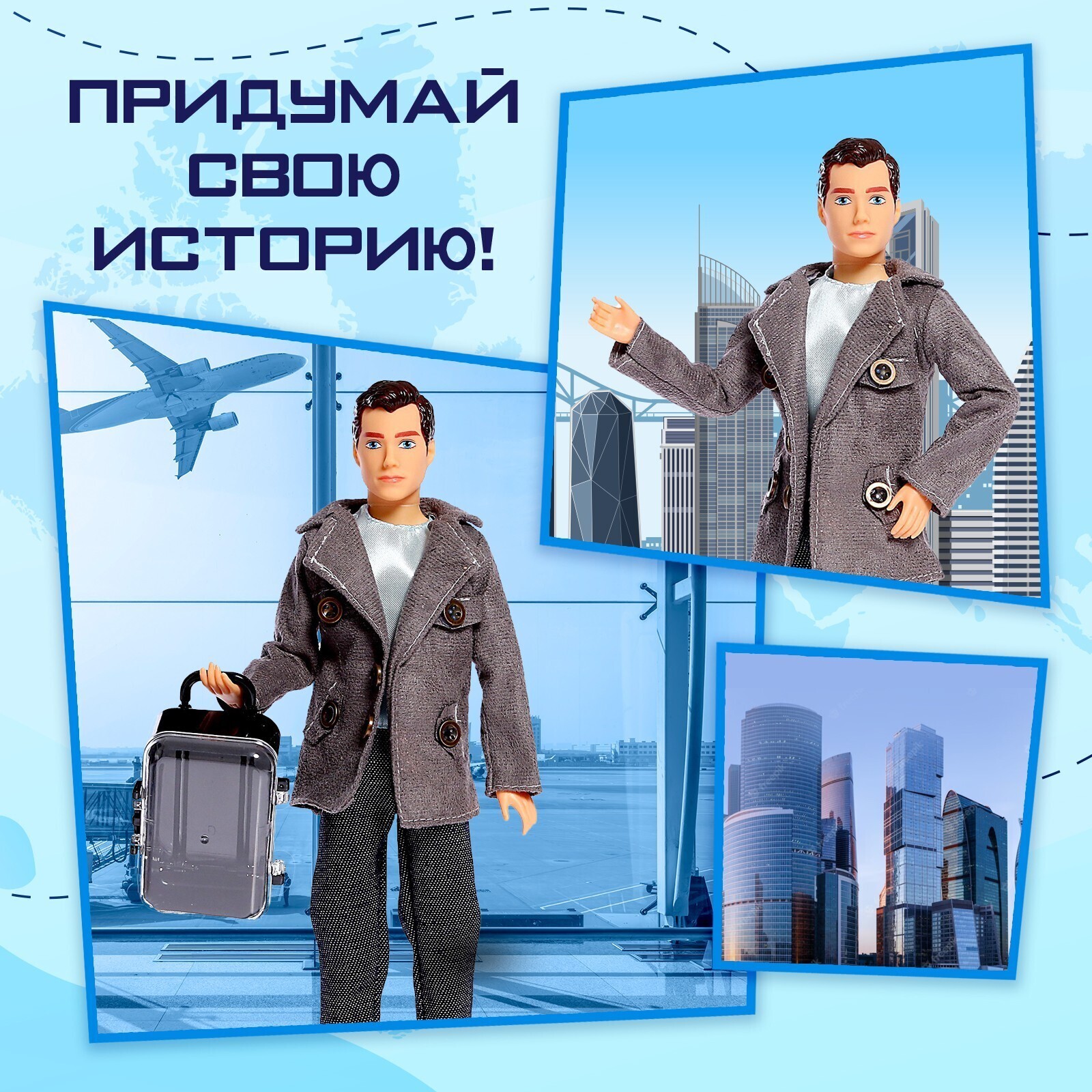 Ваша принцесса любит играть в куклы и путешествовать? Тогда эта кукла-модель станет эффектным подарком для неё! Этот красавчик составит отличную компанию в путешествиях и станет лучшим другом для куколки вашего ребёнка, а может быть, и женихом!