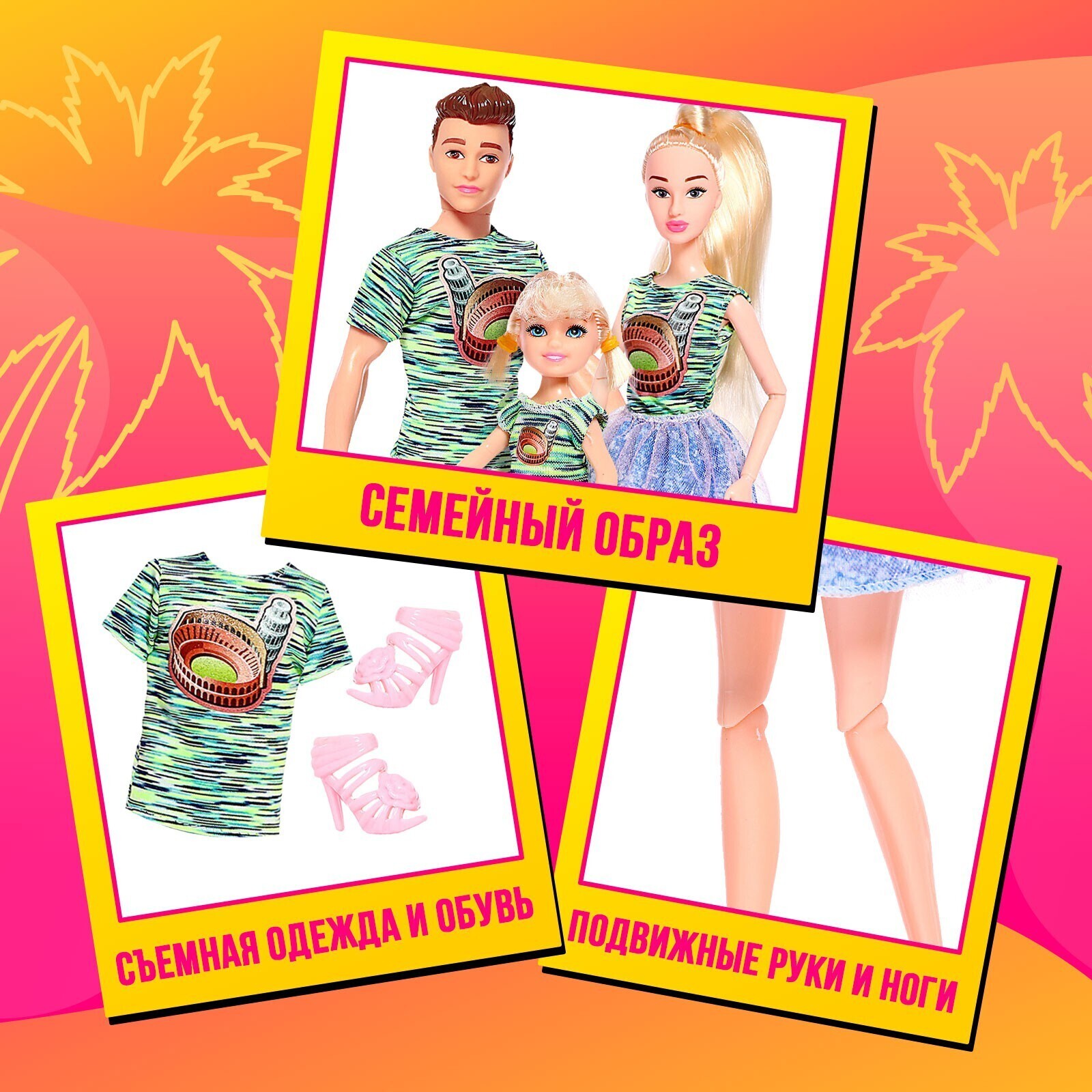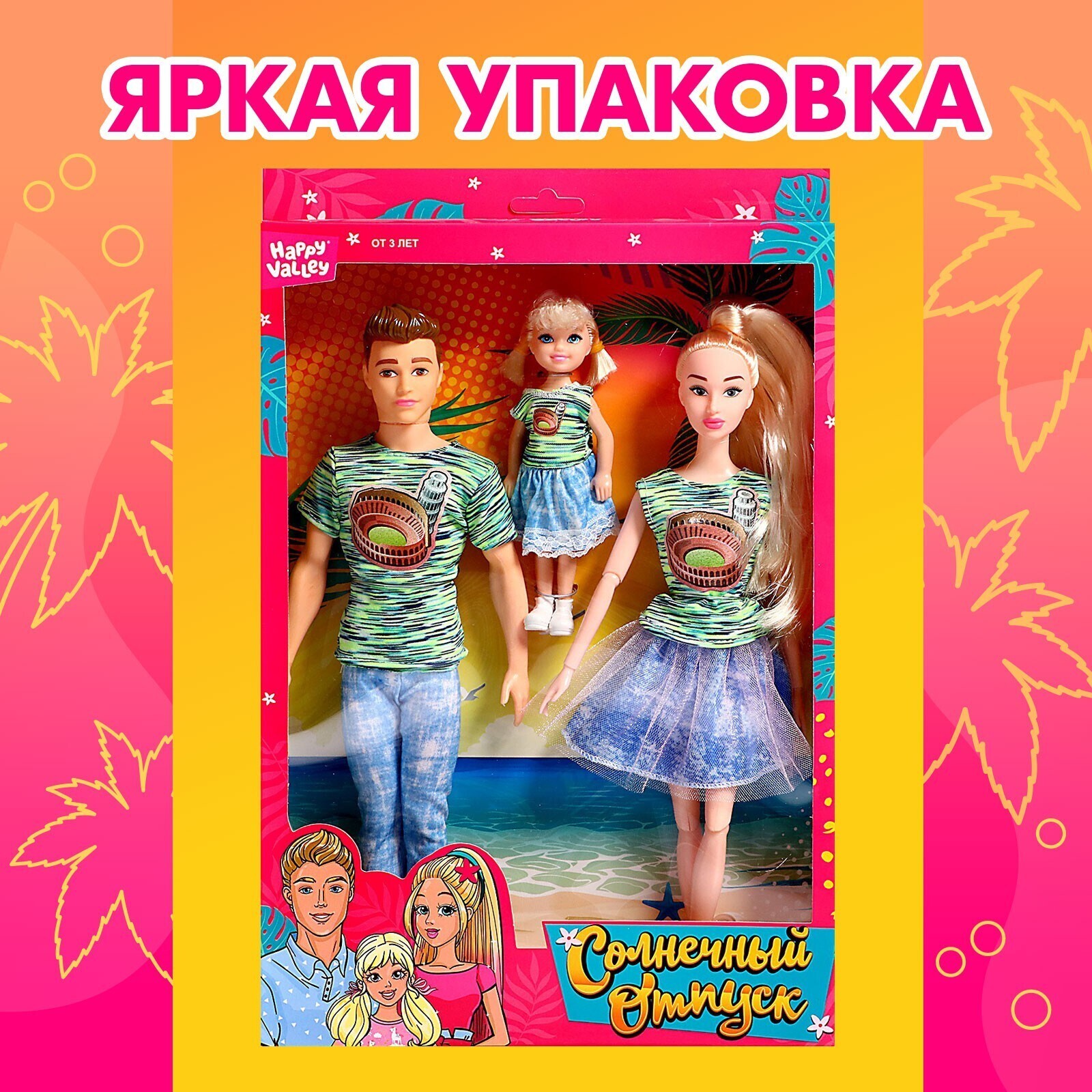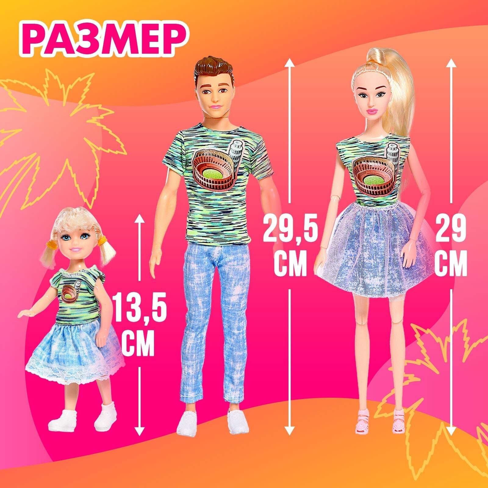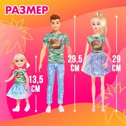 Порадуйте свою дочку целой кукольной семьёй. В наборе есть кукла-мама шарнирная, кен не шарнирный и дочка. Ваша девочка с удовольствием подружится с куколками, будет о них заботиться и осваивать социальные роли и модели поведения. Высота куколки-мамы — 29 см, куклы-папы — 29,5 см, куколки-девочки — 13,5 см.