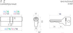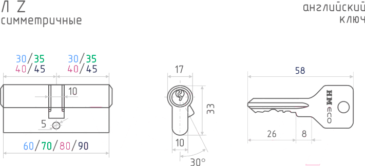 Цилиндровый механизм замка Нора-М ЕСО Z Л-70 35/35 (хром)