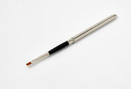 Кисть для губ в футляре. Изготовлена из нейлона. Удобна в личном использование, так как футляр будет защищать косметичку от остатка помады на кисти.