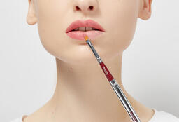 Овальная кисть для губ в складном футляре, выполненная из коричневой синтетики. Плотный ворс и удобная форма позволяет использовать инструмент для быстрого нанесения всех возможных продуктов для губ, а также для растушевки карандаша и помады.