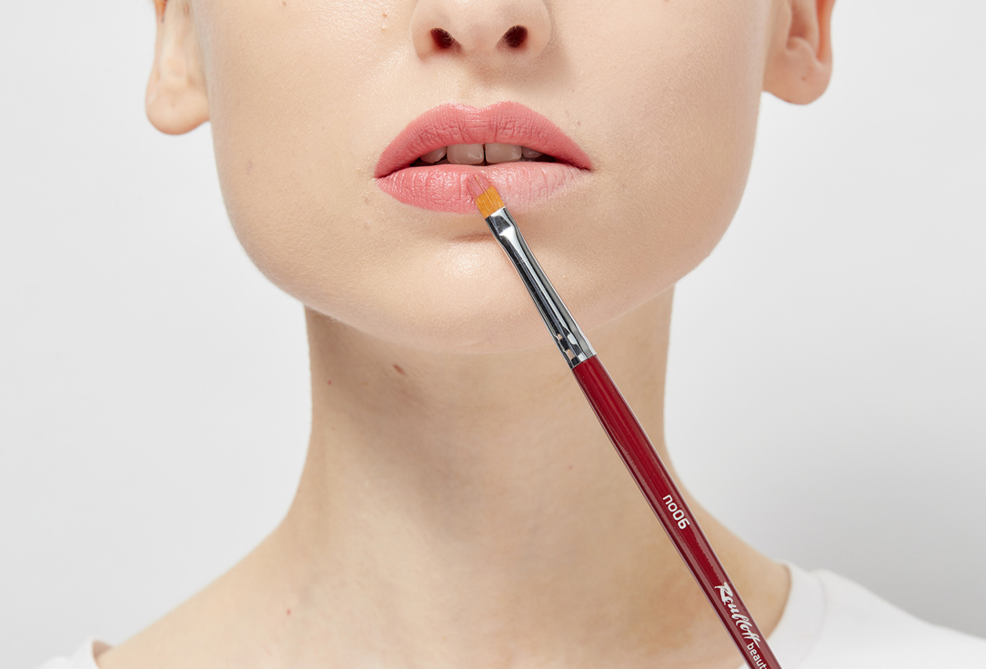 Кисть из коричневой синтетики для помад и других жирных и жидких текстур. Кисть подходят для коррекции формы губ при помощи консилеров, а также для нанесения и растушевки кремовых теней.