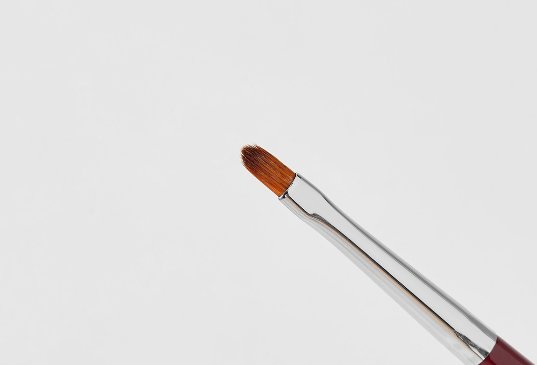 Овальная кисть, выполненная из синтетики, повторяющей свойства натурального волоса колонка. Благодаря форме, кисть может работать в двух плоскостях: тонким кончиком создают безупречные стрелки, тушуют карандаш и тени, а также могут использоваться для оформления бровей в волосковой технике. Кисть идеально справится с нанесением помад, кремовых продуктов.