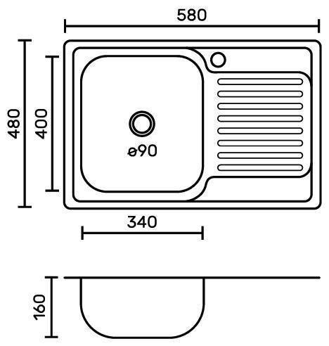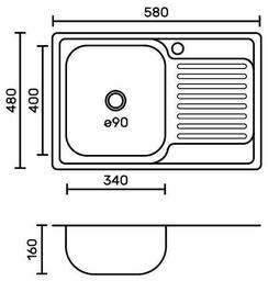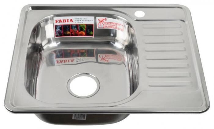 FABIA 58486L Мойка врезная, левая 580х480 мм, толщина 0,6 мм глубина 160мм + большой сифон с перелив