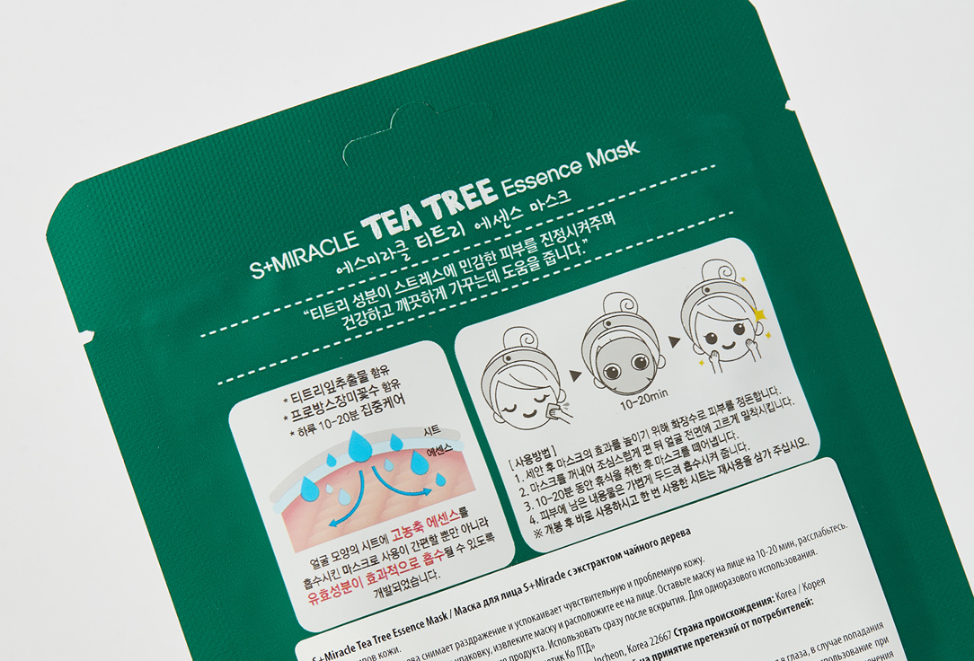 Тканевая маска с экстрактом чайного дерева, эффективно успокаивает, освежает проблемную и чувствительную кожу лица. Основа S+Miracle Tea Tree Essence Mask ― плотная салфетка, пропитанная биоактивным гелем. В его состав, кроме 1% экстракт чайного дерева, входят полипептиды сои, экстракт гамамелиса, гиалуроновая кислота и кетоны малины.