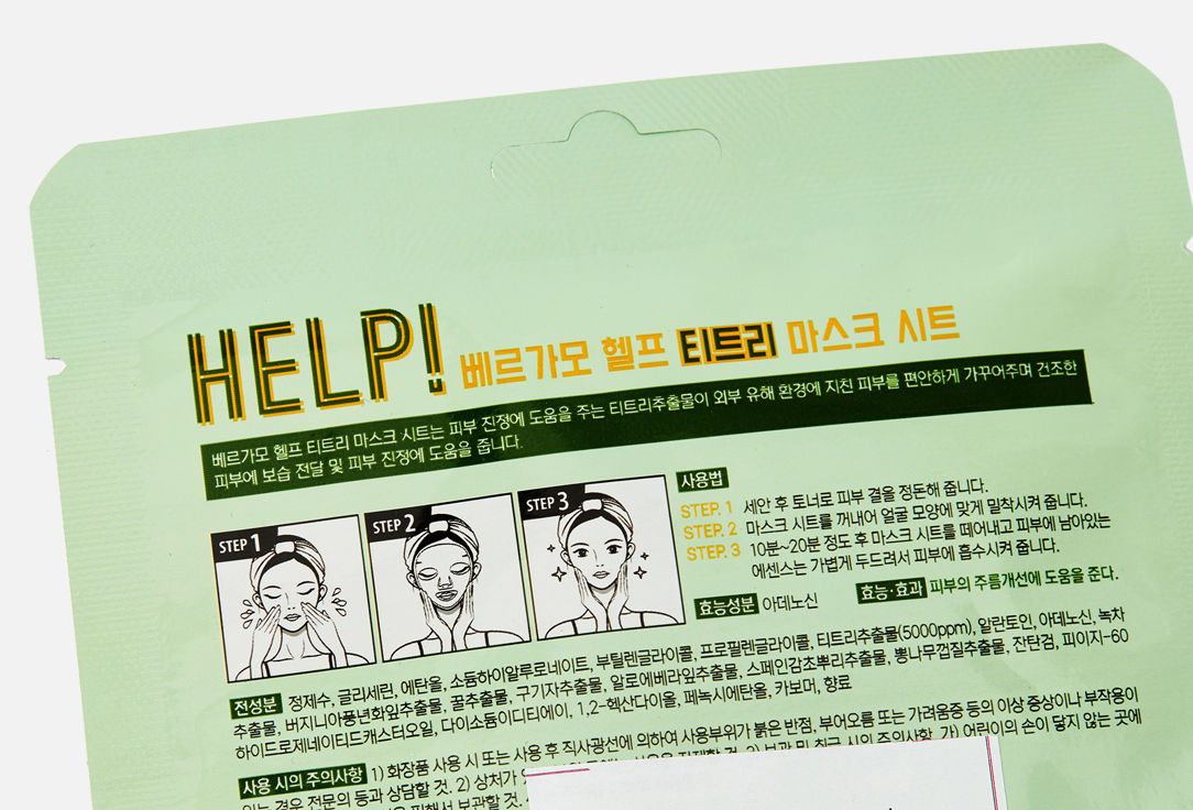 Тканевая маска пропитана эмульсией с содержанием экстракта чайного дерева и оказывает успокаивающее, антисептическое и заживляющее действие на проблемную кожу, способствует сужению пор, нормализует повышенную выработку кожного сала, устраняет жирность и блеск кожи.