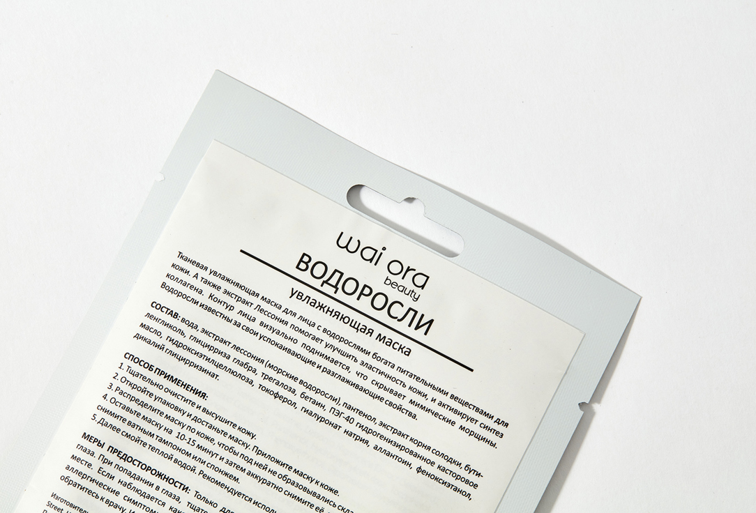 Тканевая увлажняющая маска Wai Ora для лица с водорослями богата питательными веществами для кожи. А также экстракт Лессония помогает улучшить эластичность кожи, и активирует синтез коллагена. Контур лица визуально поднимается, что скрывает мимические морщины. Водоросли известны за свои успокаивающие и разглаживающие свойства.