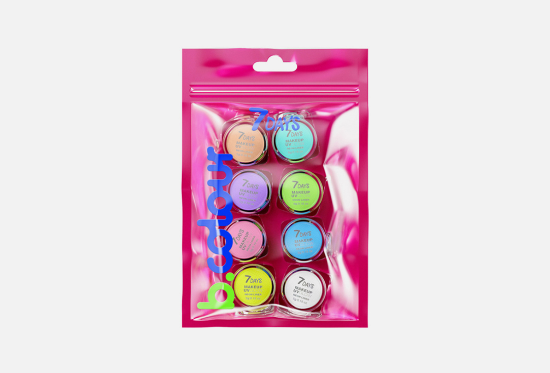 Любовь с первого свайпа - твой идеальный мэтч с 7DAYS. Выбирай неоновые лайнеры для макияжа UVGLOW NEON PASTEL. В набор декоративной косметики входят сразу 8 ярких трендовых цветов. Ты можешь их смешивать, и сама создавать уникальные оттенки. Для применения просто добавь в твердый лайнер пару капель воды. Подводка для глаз 7DAYS обладает высокой стойкостью и легко наносится. Цветные лайнеры быстро сохнут, долго держатся и светятся в ультрафиолете. Жидкая подводка для глаз с супер-возможностями отлично подойдет для новых фото, видео и ярких вечеринок. Для нанесения рисунка возьми любимый набор кистей для макияжа, подойдет также спонж или тонкая кисть для макияжа. Держится подводка лайнер весь день и смывается средством для снятия макияжа или мицеллярной водой CUTE. Применение: открой контейнер, добавь в него 2-3 капли воды и нанеси лайнер. Подожди пока жидкая подводка высохнет. Твори, сияй и выделяйся с косметикой 7DAYS!