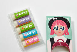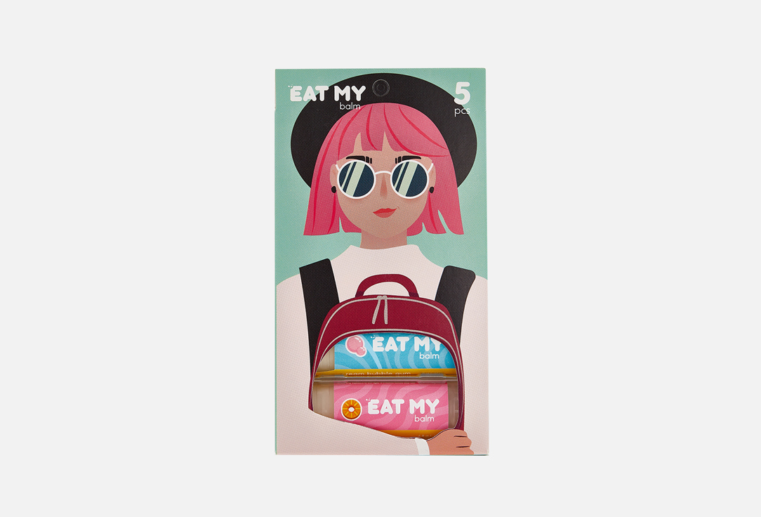 Состав набора: бальзамы для губ EAT MY Balm «Виноградный сорбет», «Апельсиновый сорбет», «Манговая панна котта», «Сливочный бабл гам», «Ананас».