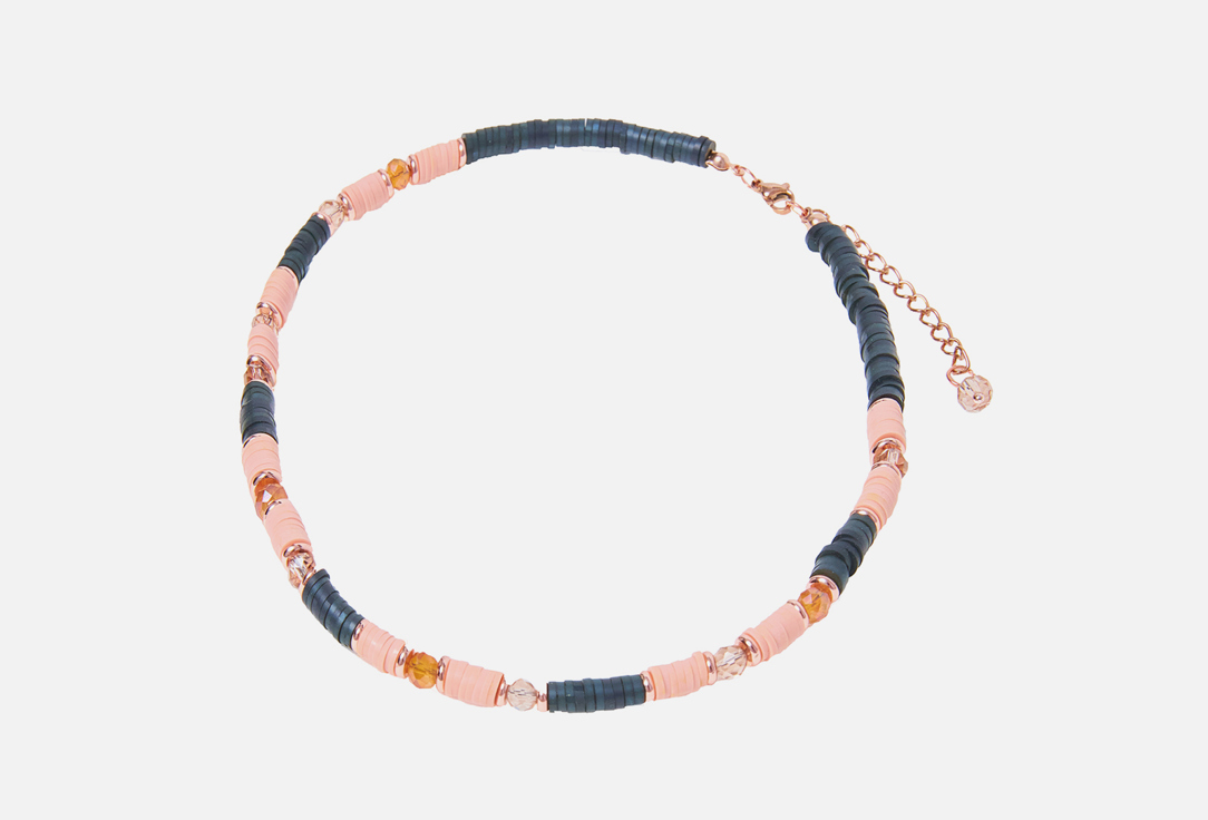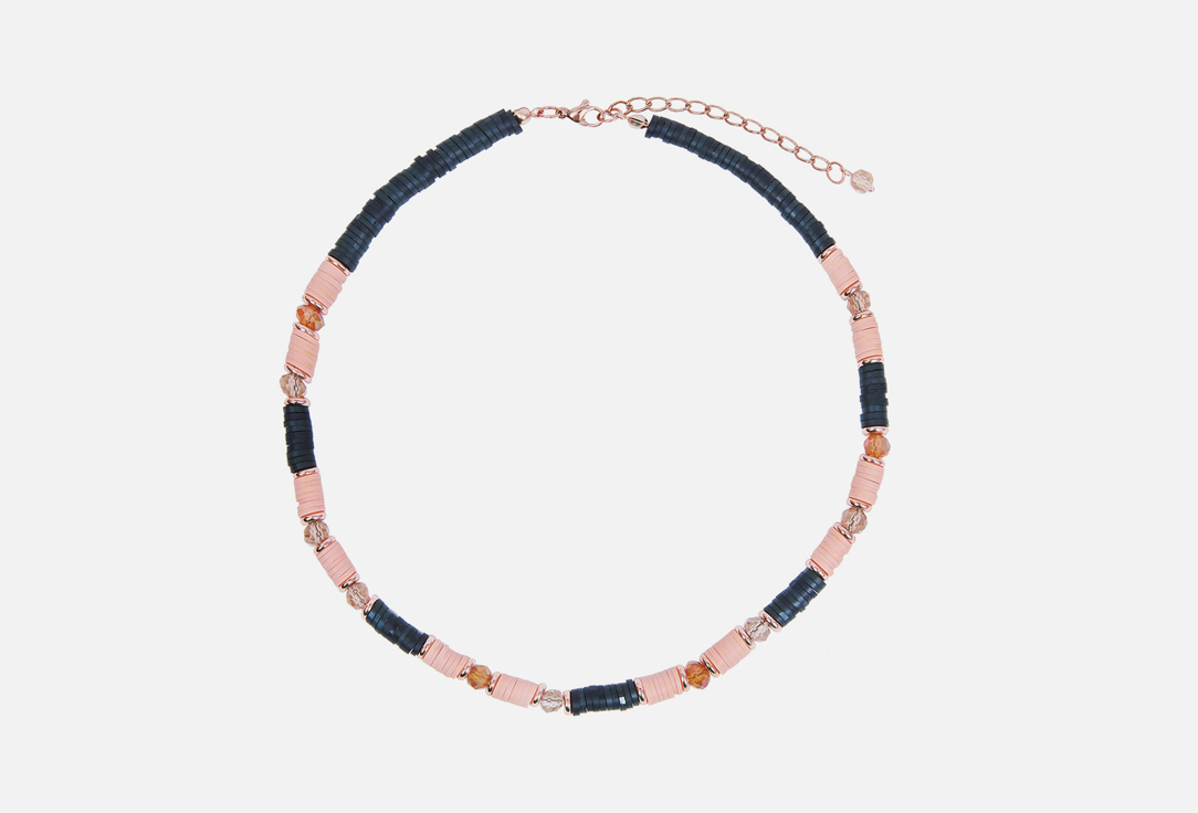 Этот чокер о-очень долго ждал возвращения моды на Black & Pink и, наконец, дождался. Вновь актуальная розово-чёрная расцветка воплощена в сочетании гранёных хрустальных и металлических розовых бусин с чёрными плоскими дисками из каучука. Чокер сделан российским брендом REBELLIOUS для бунтарей и бунтарок всего мира. Длина изделия: 38 см