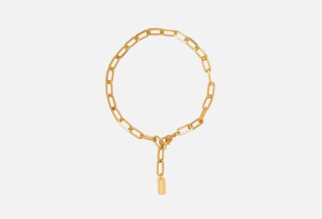 Лаконичный безразмерный браслет на руку, в золотом цвете.