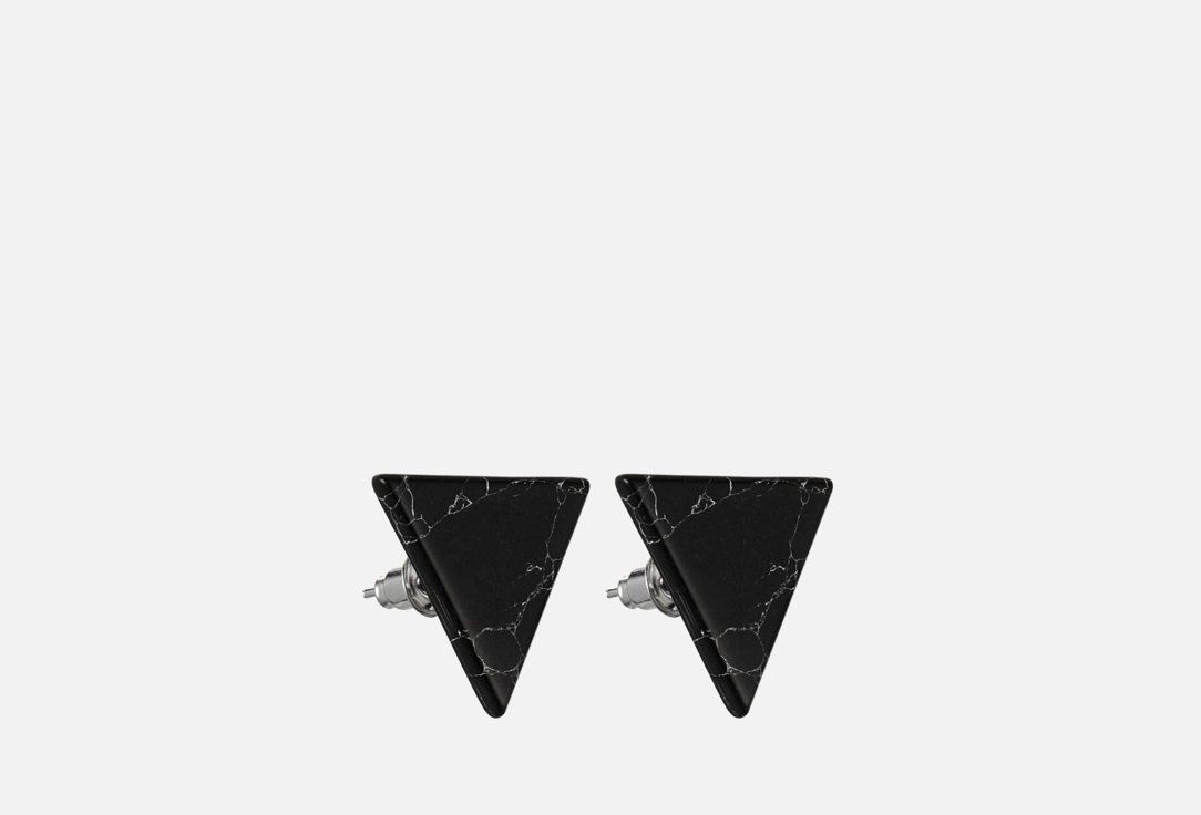 Серьги выполнены из гипоаллергенного приятного на ощупь материала, который не оставляет черных следов на коже и одежде. Украшение в форме равностороннего треугольника шириной 2 см.