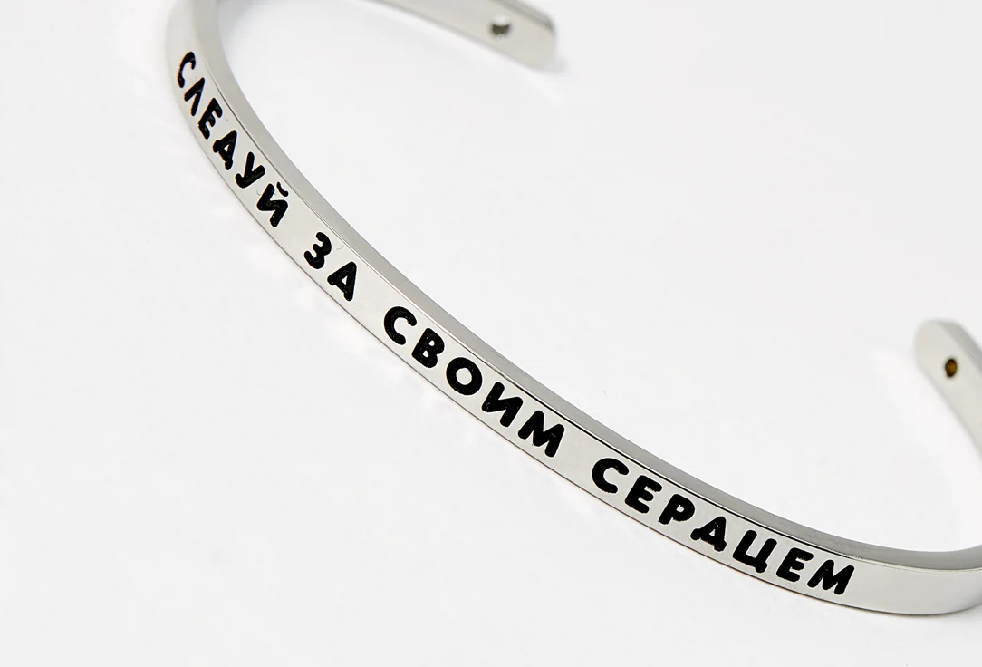 Надпись на браслете будет вдохновлять каждый день и помогать не сбиваться с выбранного пути.