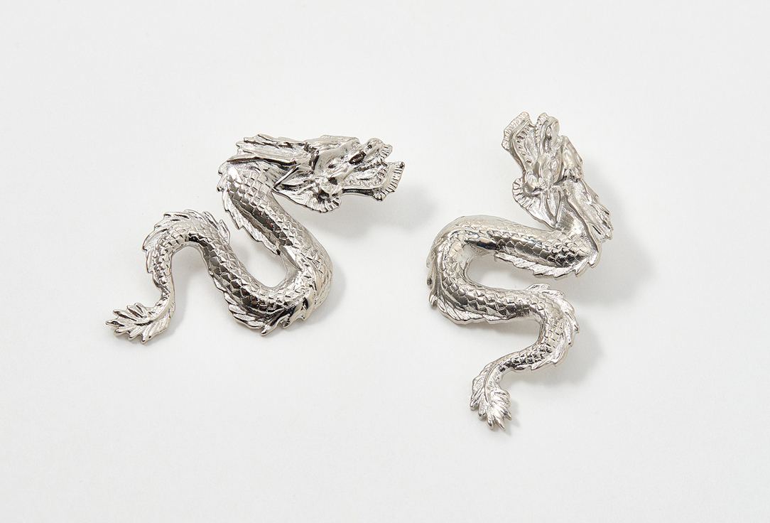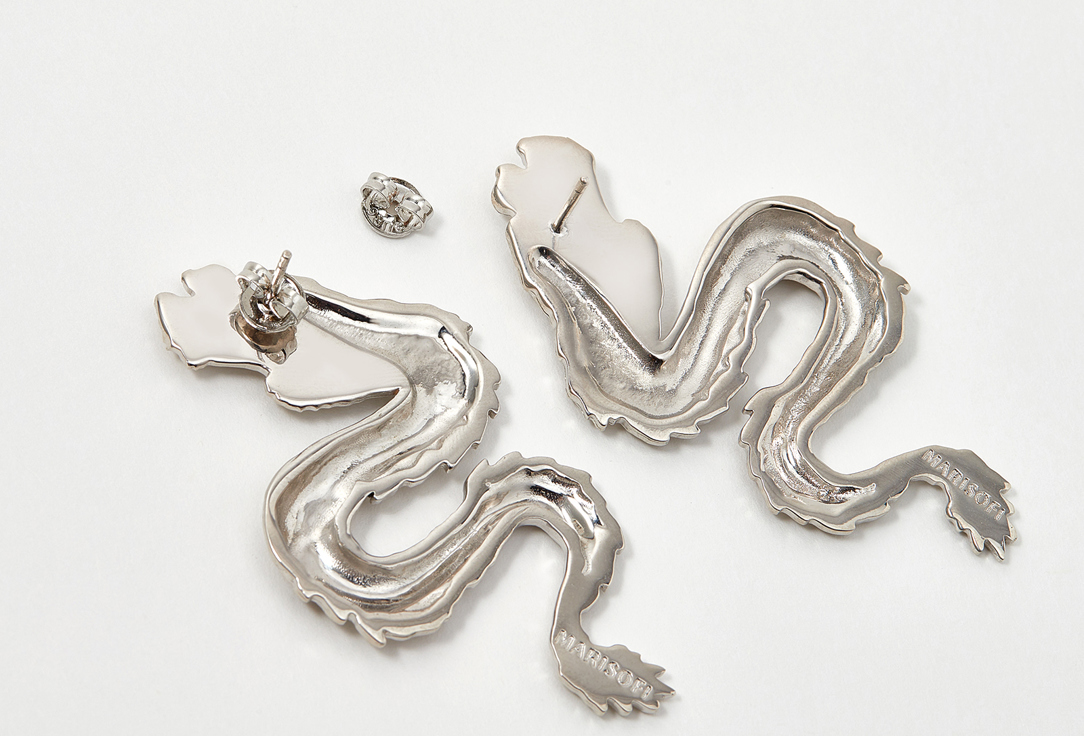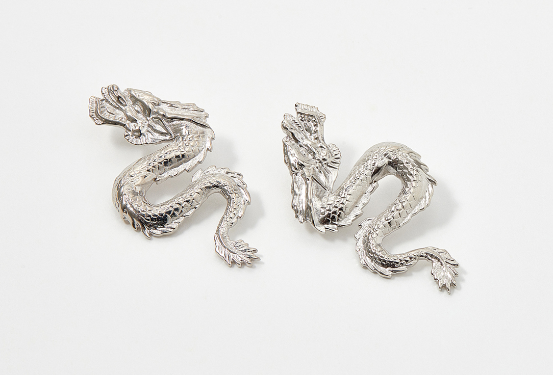 Серебристые серьги драконы. Маркированы. Размер: 6 см