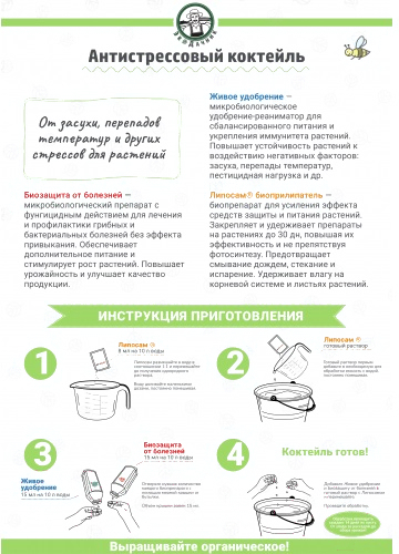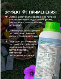 Свойствастимулирует рост, защищает от заболеваний, воздействует на корневую систему, воздействует на цветение/созревание, увеличивает урожайность, воздействует на семена/рассаду/побеги, улучшает приживаемость при пересадке, улучшает декоративные свойства растения, защищает от вредителей, лечение грибковых болезней, лечение бактериальных болезней, воздействует на качество/структуру почвы, воздействует на качество плодов, улучшает влаго-/воздухообмен, увеличивает количество питательных веществ, помогает перенести неблагоприятные внешние факторы, обеспечивает фитосанитарное действие, увеличивает действие удобрений в земле, обеззараживает, повышает качество биохимических процессов в растениях, стимулирует закладку плодовых почек, продлевает срок службы грунта горшечных культур, способствует плодообразованию, ускоряет обмен веществ