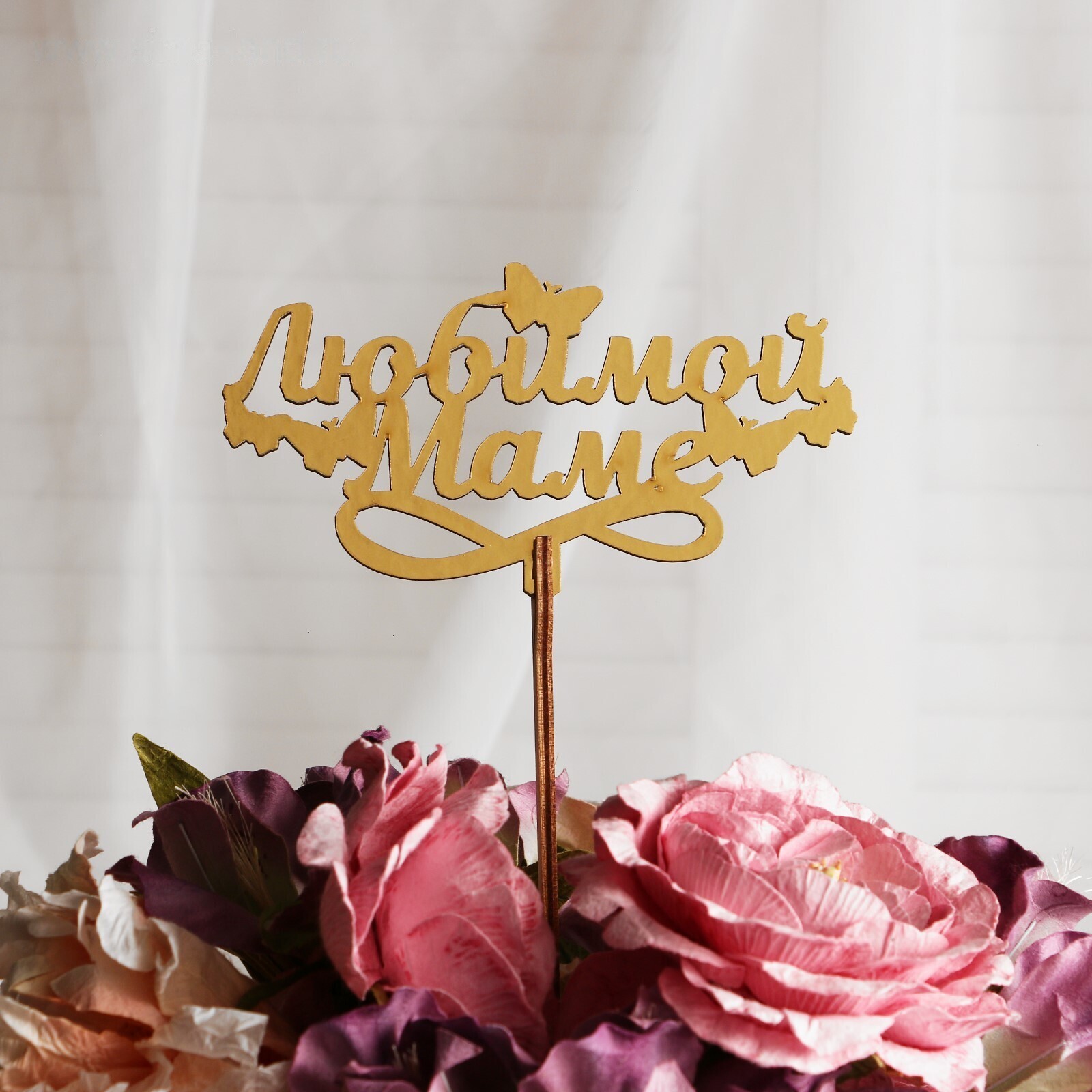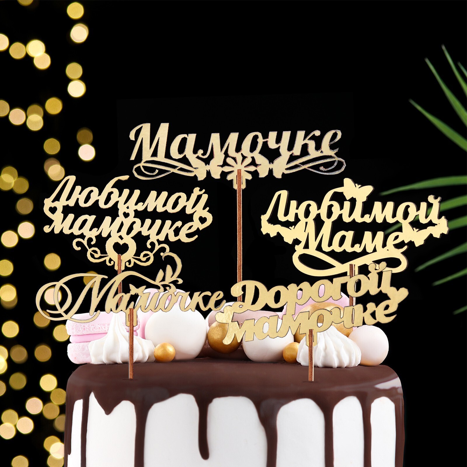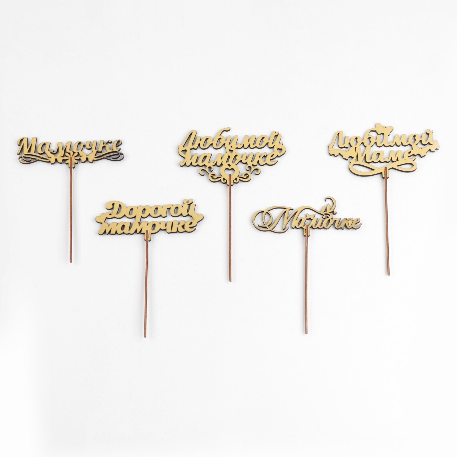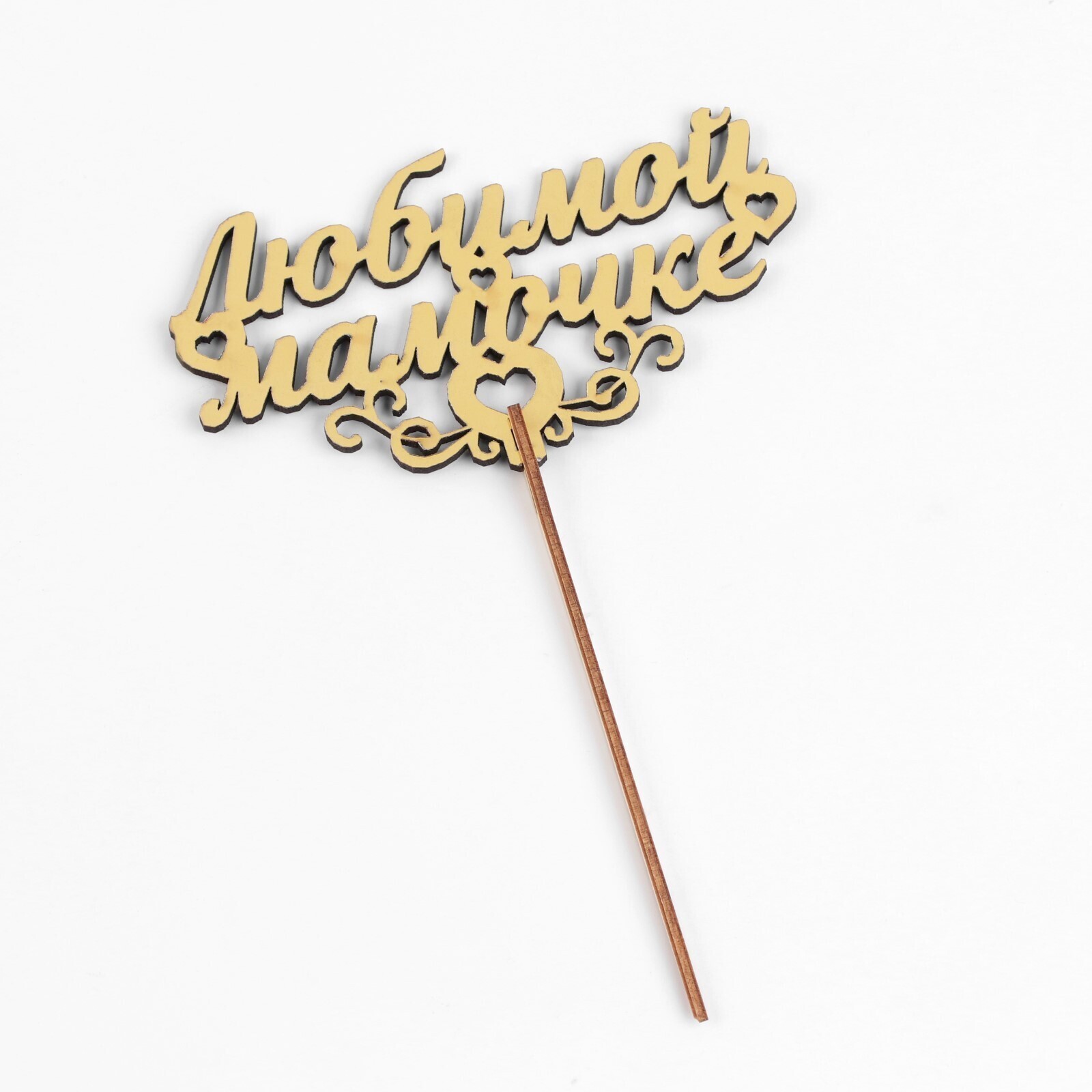 Топпер деревянный "Маме" золотой, МИКС, в фасовке 5 разных, Дарим Красиво