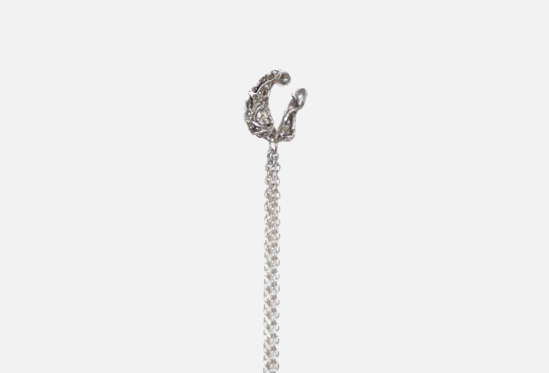 Кафф ручной работы из серебра 925 пробы от бренда BLOSSOM jewellery. Невероятный кафф авторского дизайна со сверкающими на свету цепочками привлечёт внимание и добавит образу яркости. Максимальная длина цепочек каффа достигает 15 см. Кафф легкий в носке, не требует прокола и регулируется под любой размер хрящика уха. Кафф на 50% состоит из вторичного серебра.