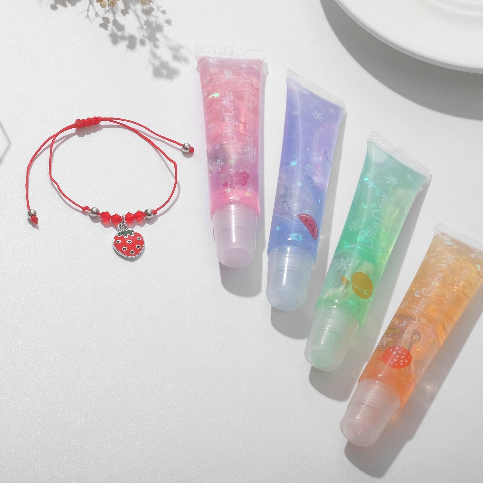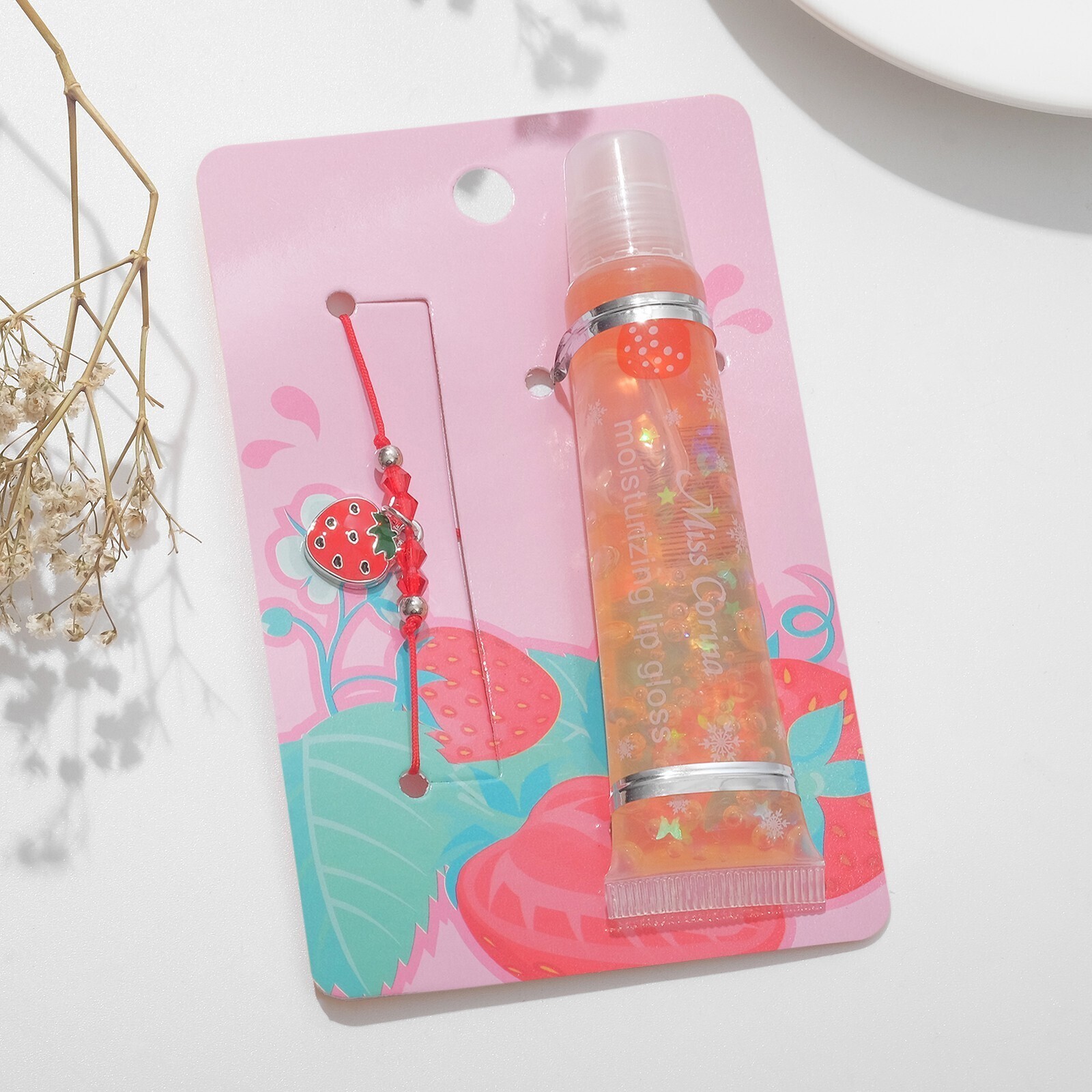 Набор 2 предмета: браслет, блеск для губ "Фрукты с пузырьками" клубника, цвет красный, 6см
