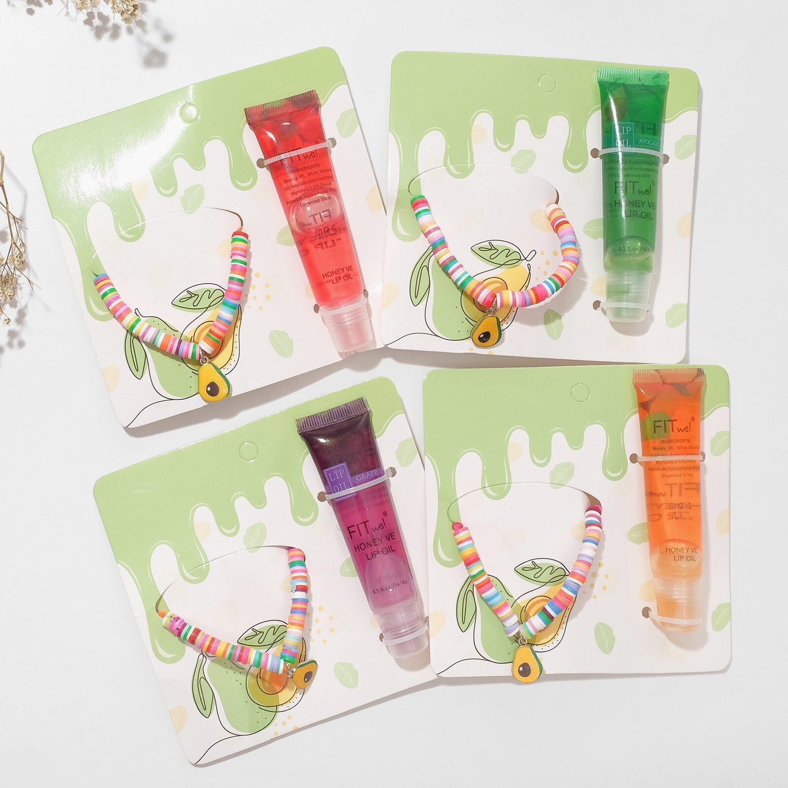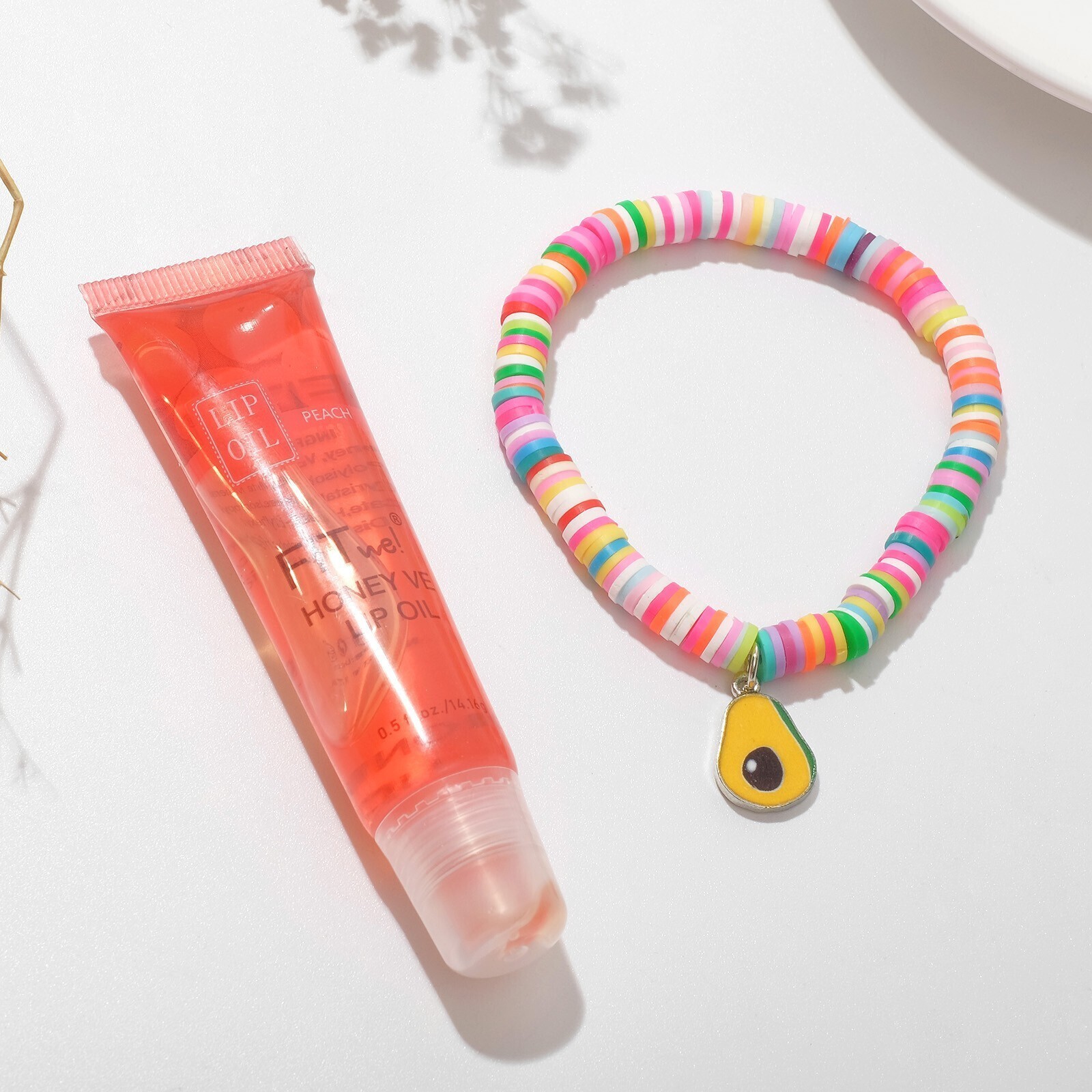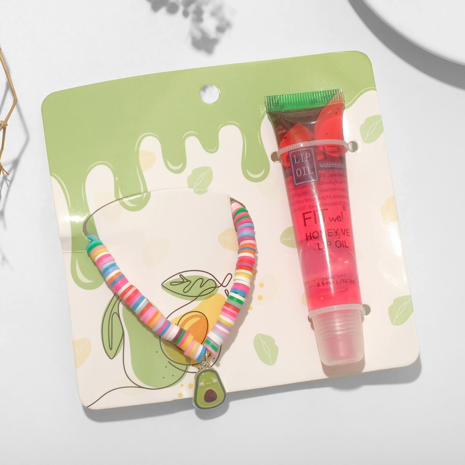 Набор 2 предмета: браслет, блеск для губ "Фрукты" авокадо, цветной, 6см