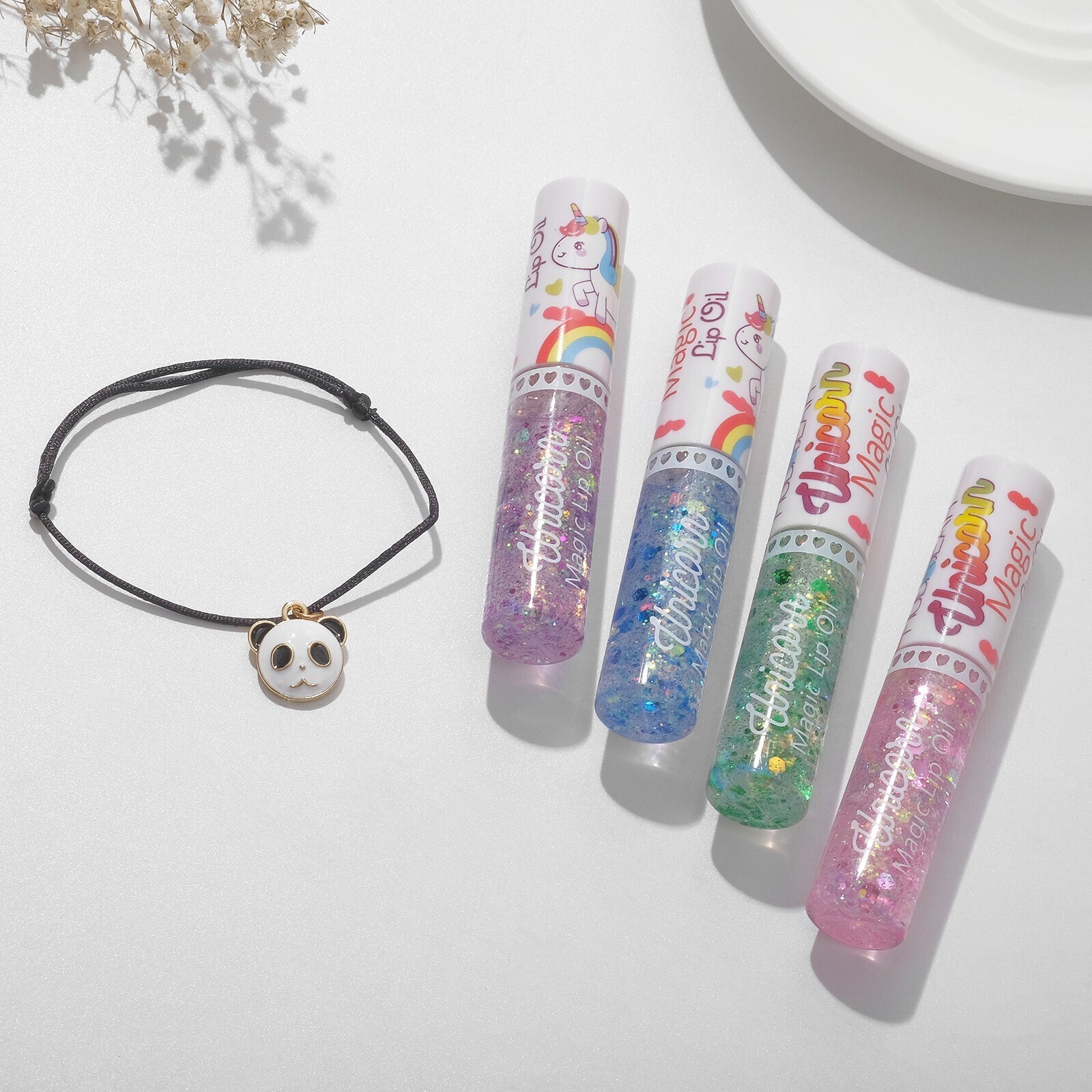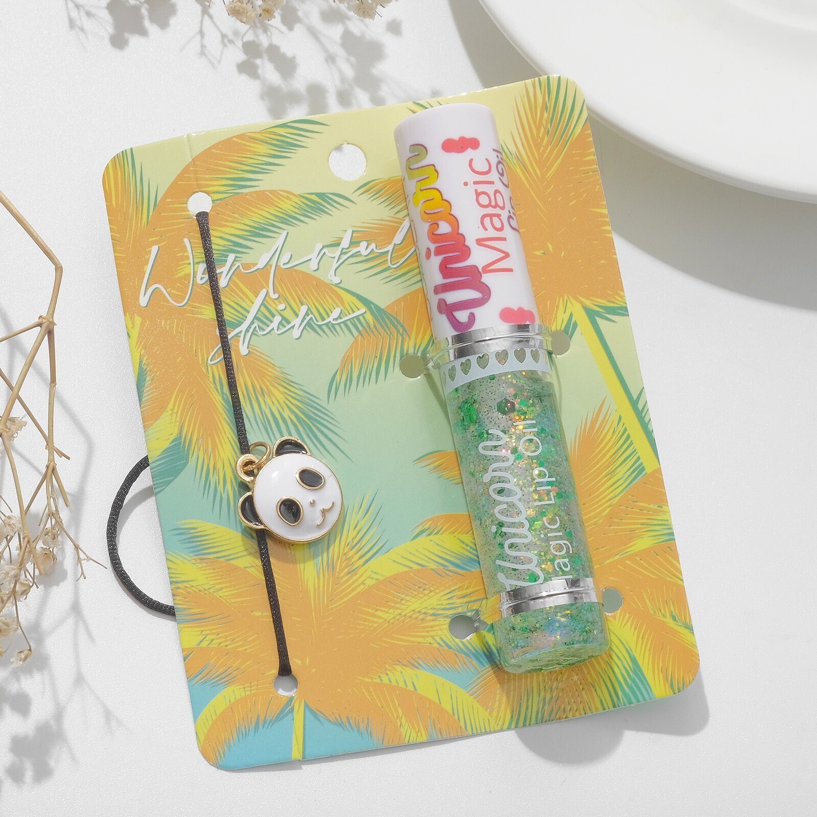 Набор 2 предмета: браслет, блеск для губ "Единорог" панда, цвет чёрно-белый, 6см