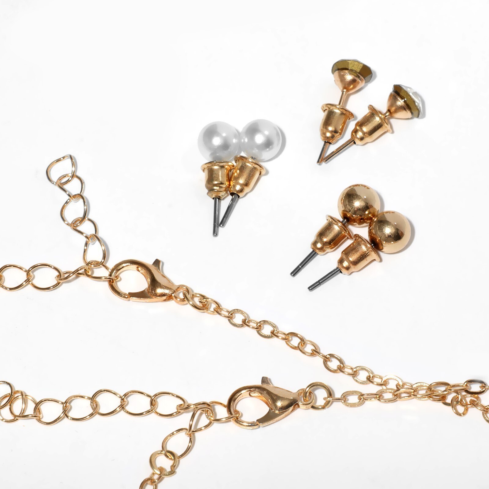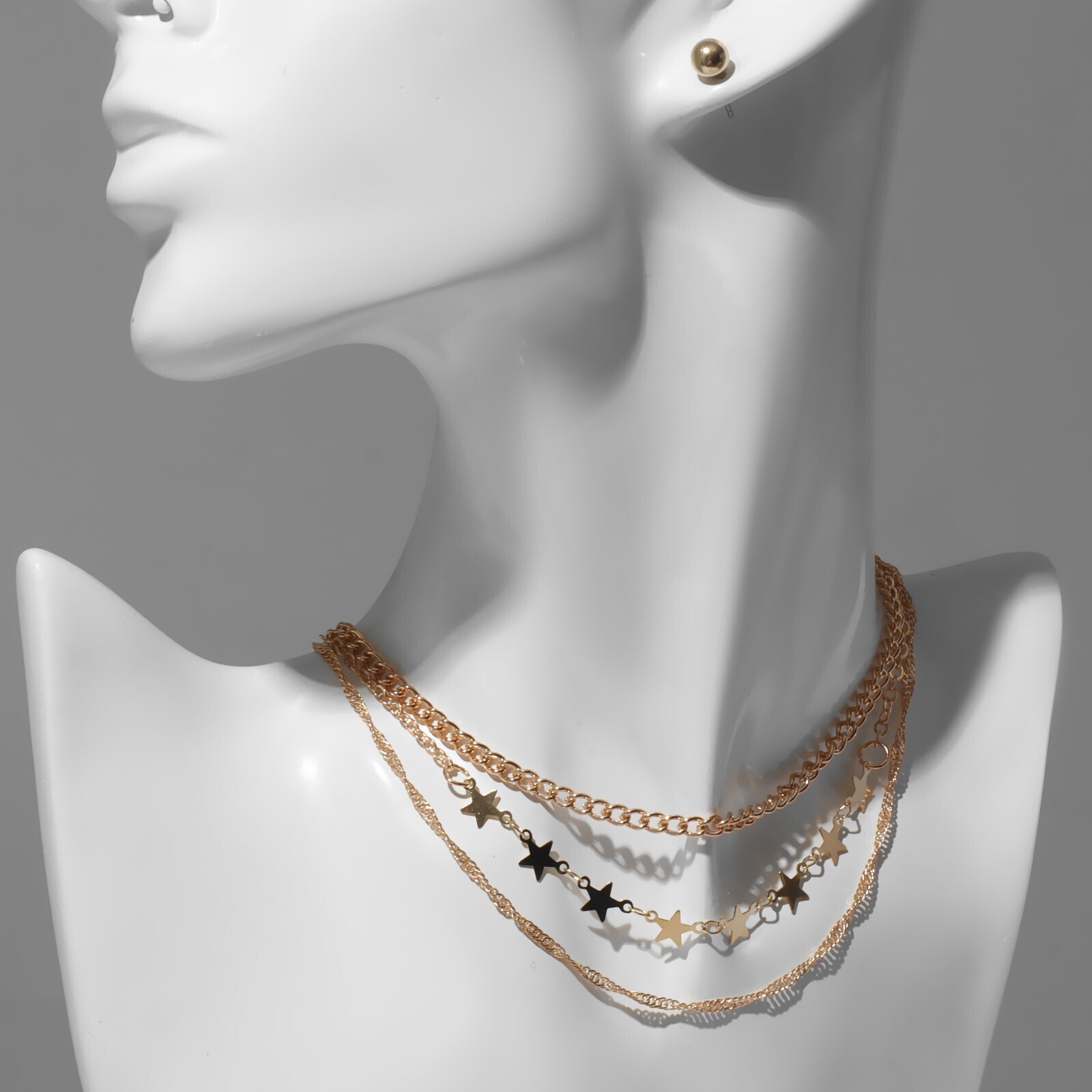 Набор: 3 колье, 3 пары пусет "Эстетика" звезды, цвет белый в золоте, L=30