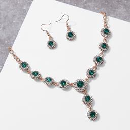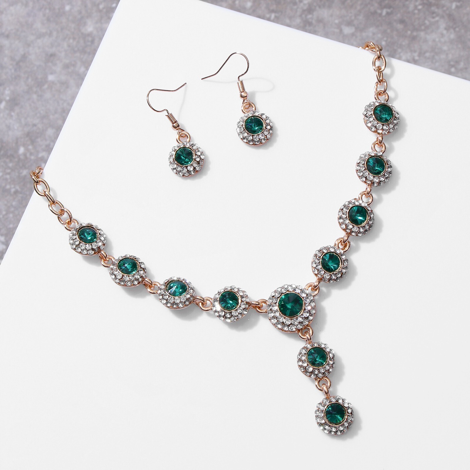 Набор 2 предмета: серьги, колье "Великолепный век", цвет бело-изумрудный в золоте, 42см