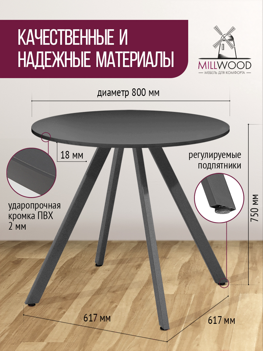 Обеденный стол Millwood Олесунн D800 18мм (антрацит/металл графит)
