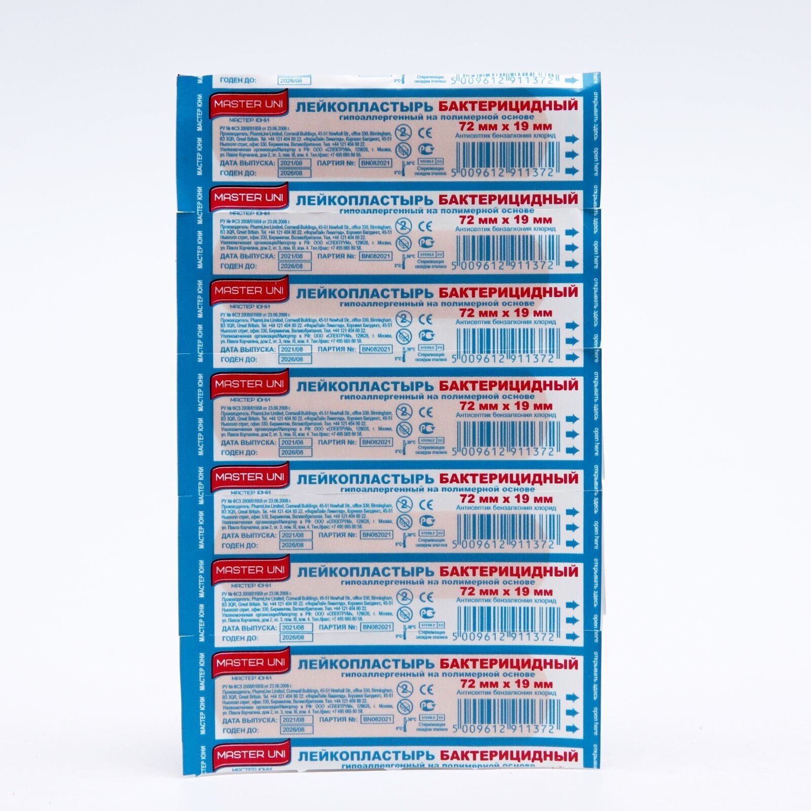 Лейкопластырь бактерицидный гипоаллергенный на полимерной основе 72мм х 19мм Антисептик хлорид бензалкония.
