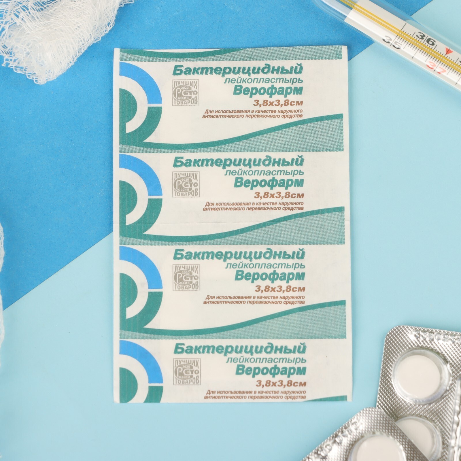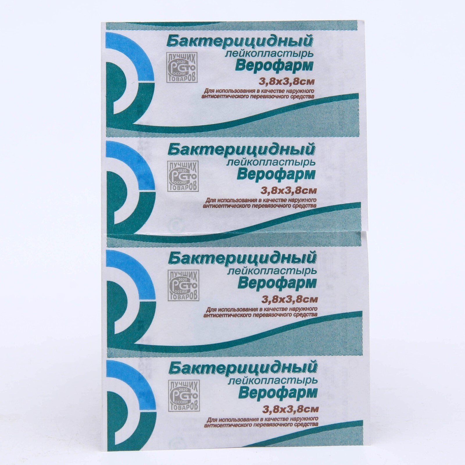 Лейкопластырь "Верофарм" бактерицидный на тканной основе, 3,8 х 3,8 см, 2 шт.