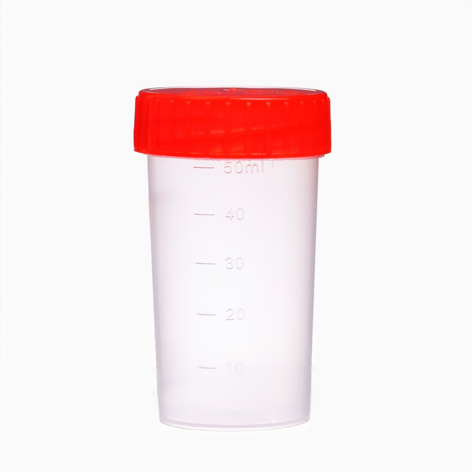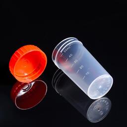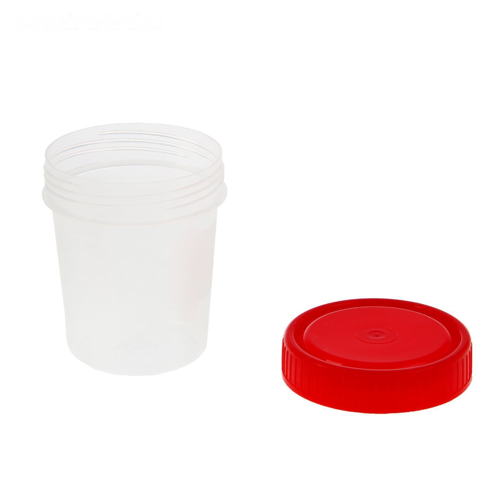 Контейнеры-баночки одноразовые полимерные медицинские предназначены для сбора, хранения и транспортировки образцов биологических материалов (моча, кал, мокрота, грудное молоко, сперма), а также иных жидких и твёрдых материалов для дальнейшего лабораторного исследования. Материал изготовления — ультрачистый полипропилен. На боковой стенке имеется матовое окно для записи и градуировка с шагом 10 мл.