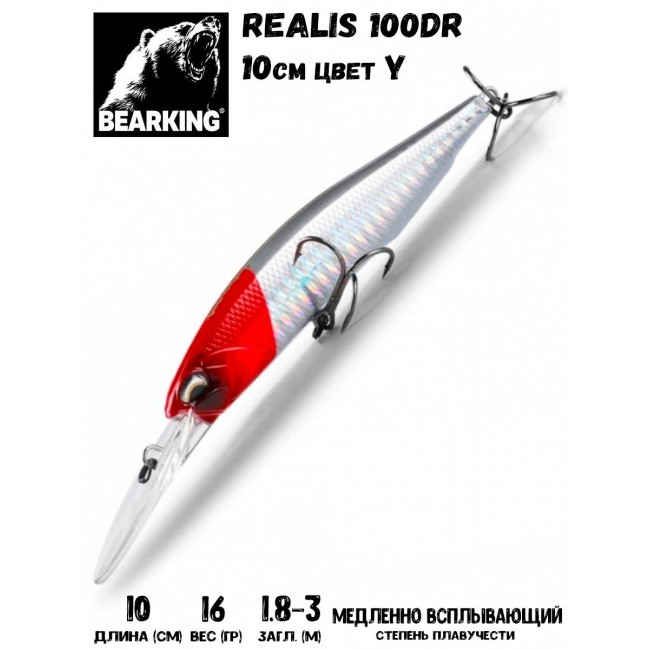 Воблер Bearking Realis Jerkbait 100DR 16гр загл. 1,8-3м SP - это копия DUO REALIS JERKBAIT 100DR. Тип воблера — минноу, длина - 100 мм. вес - 16 грамм, заглубление от 1,8 до 3 метров, плавучесть — суспендер. Приманка для рыбы оснащена системой дальнего заброса и тремя шумовыми камерами. Приманка для рыбалки отлично подойдет для троллинга. Несмотря на то, что Realis Jerkbait 100DR проектировался, как и японский оригинал, под твичинг. Эффективно применяется при ловле щуки, судака в летний и осенний период как на реках с течением, так и на водоемах со стоячей водой.