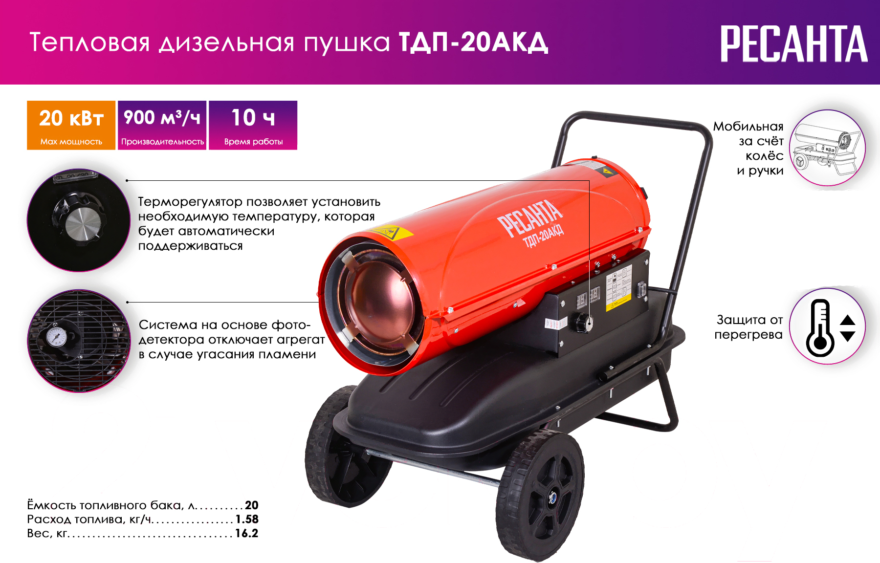 Тепловая пушка дизельная Ресанта ТДП-20АКД (67/1/43)