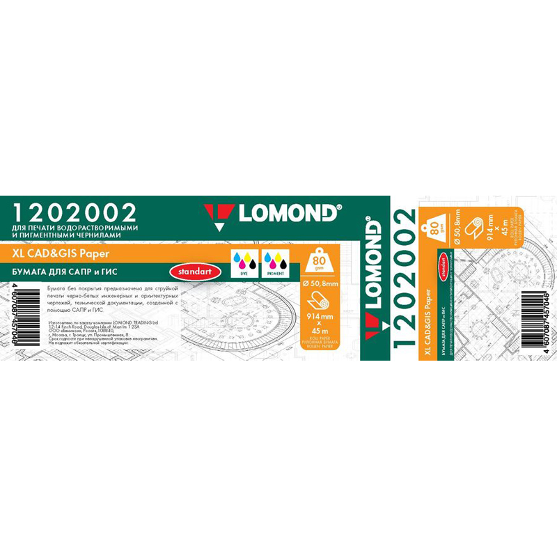 Рулон инженерной бумаги LOMOND - Стандарт, ширина 36" (914 мм), длина 45м, диаметр 51мм, 80г/м², 1202002