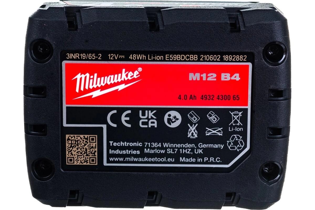 Milwaukee M12B4 Аккумулятор 12В (4.0Ah, Li-On) 4932430065