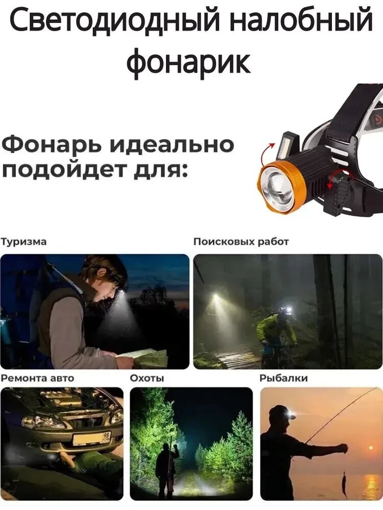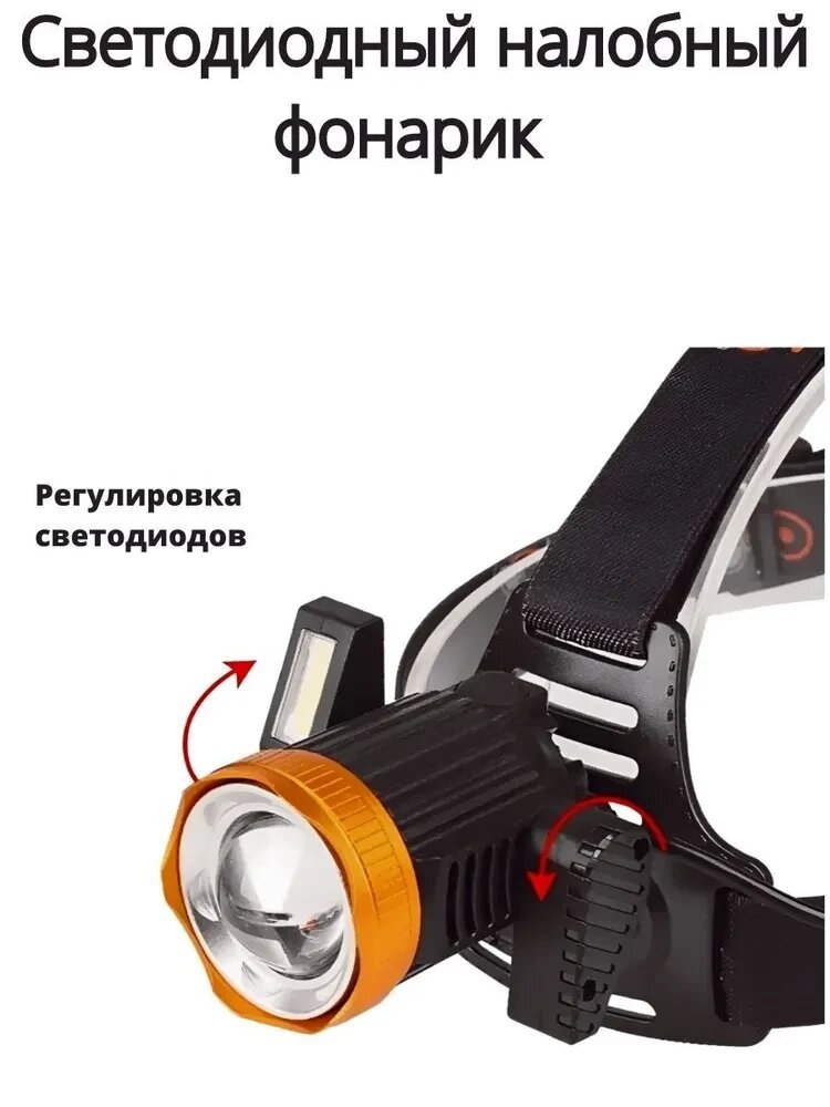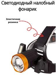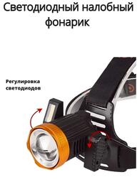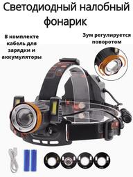 Фонарь налобный с АКБ YM-167-T6 (T6+2COB, 2 аккумулятора 18650, зарядка от micro USB)