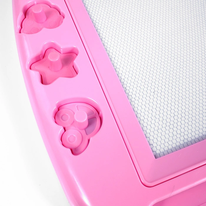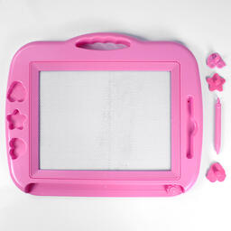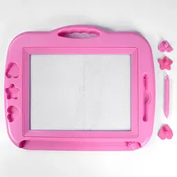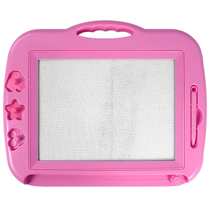 Доска для рисования в наборе 3 магнитных фигурных штампа +магнитное перо .Доска помогает ребёнку развивать свои творческие способности, мелкую моторику и образное мышление. Это небольшой "холст", рисунки с которого легко стираются - достаточно провести рычажком и можно рисовать снова. Размер поля для рисования:16.5*22.5см. Ассорти цвет.