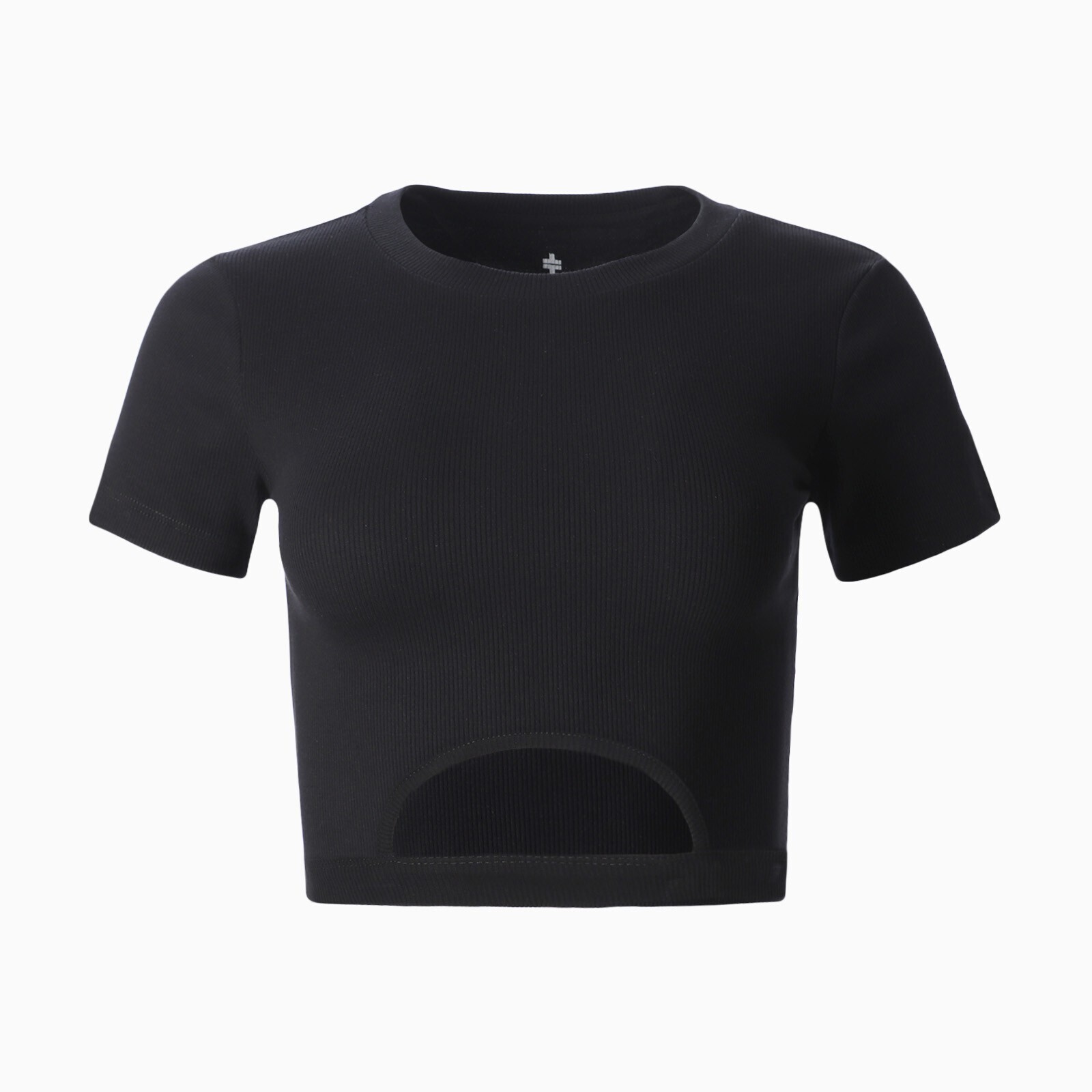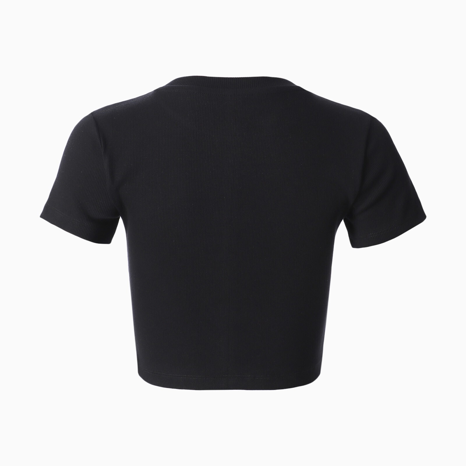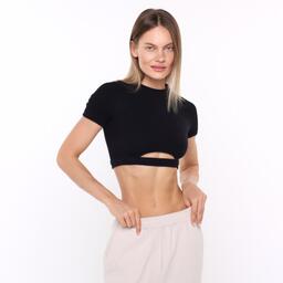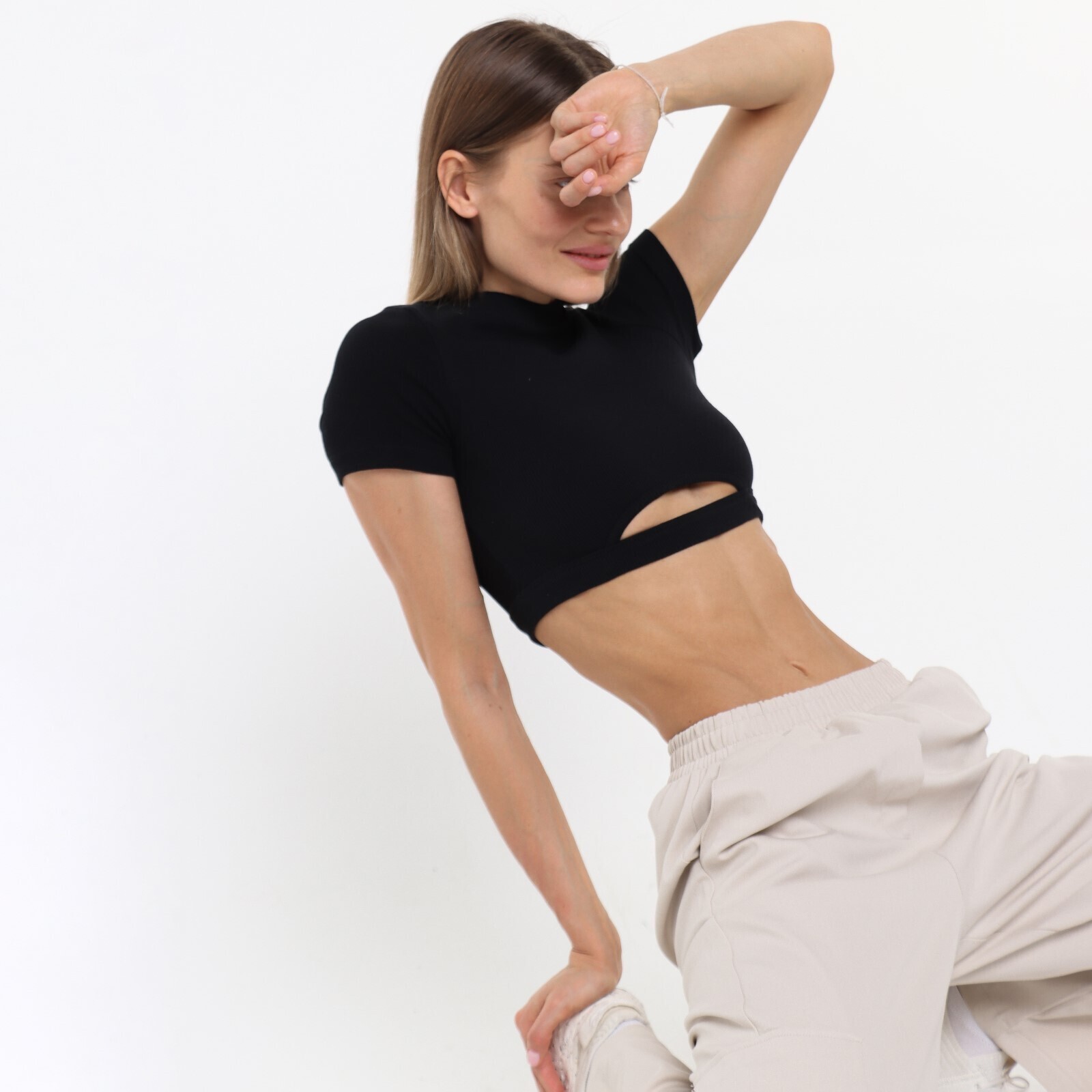 Футболка женская укороченная, цвет чёрный, размер 44 (M)