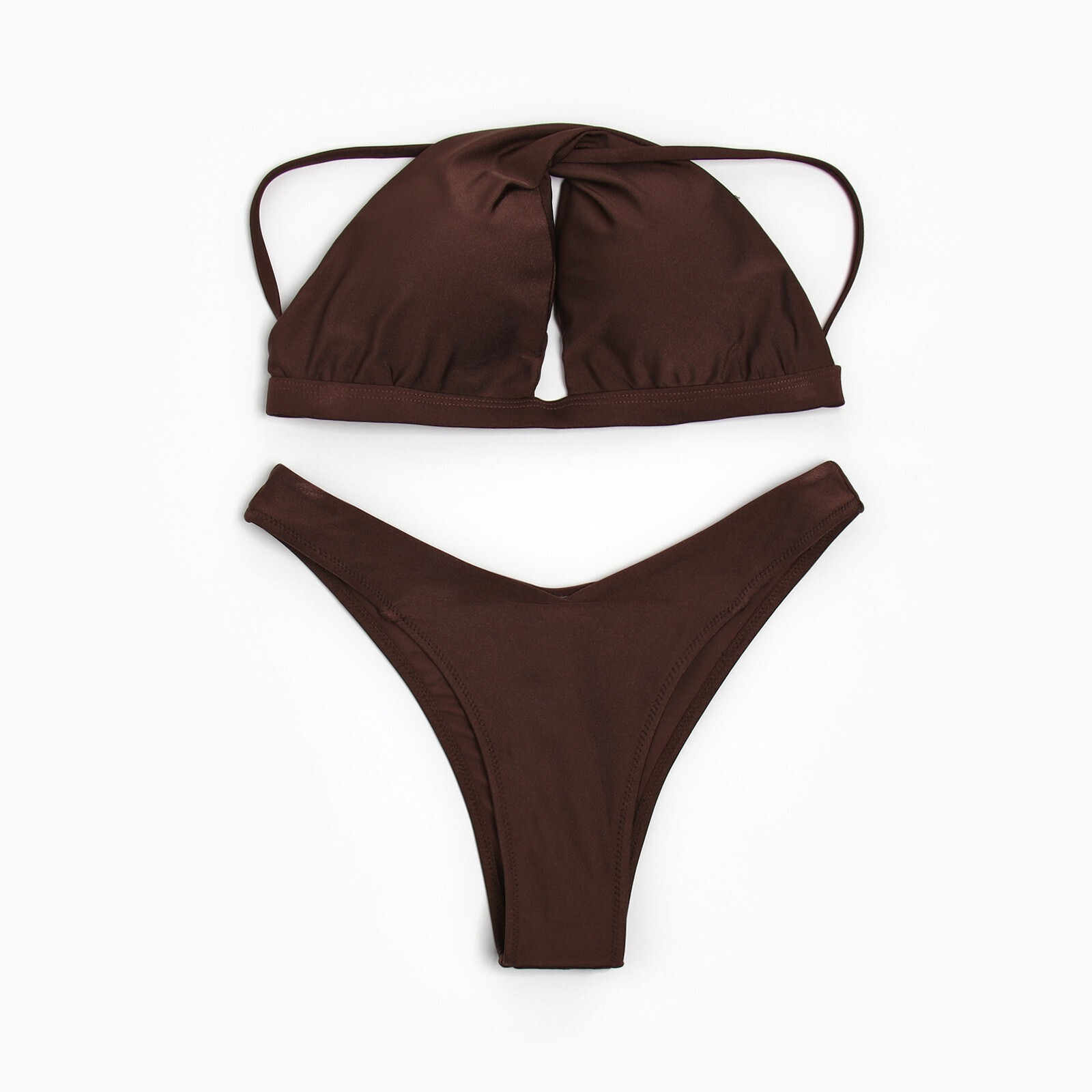 Купальник женский раздельный с люрексом MINAKU цвет кофе, размер 48