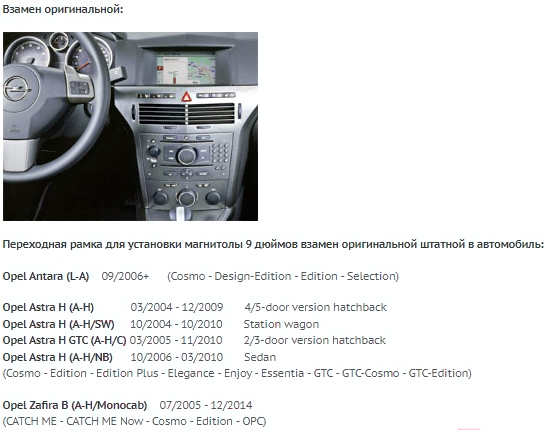 • Модели Opel Astra, Agila, Vectra, Zafira, Corsa D