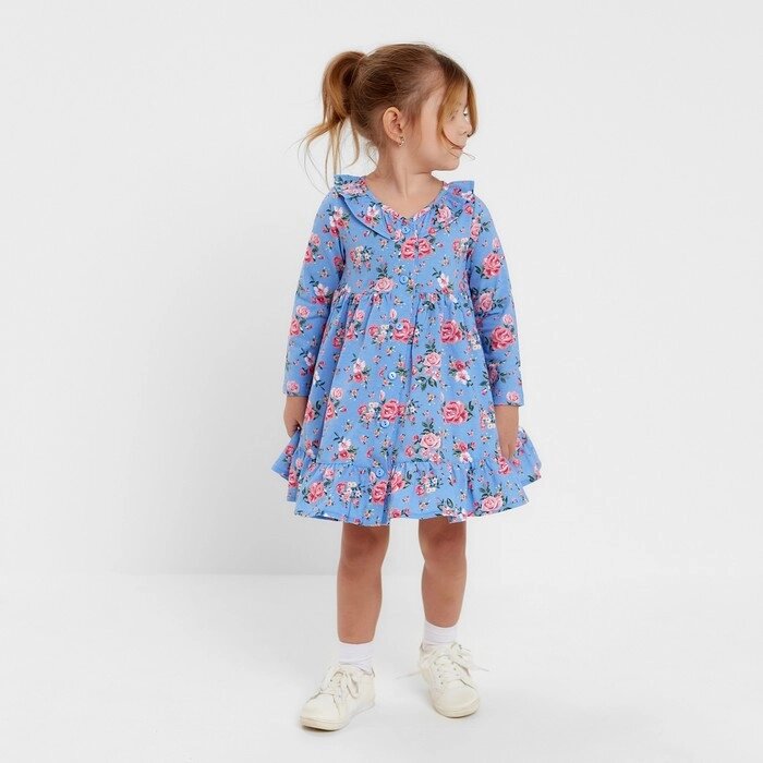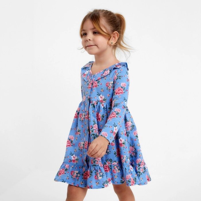 Платье для девочки, цвет голубой/розы, рост 98 см