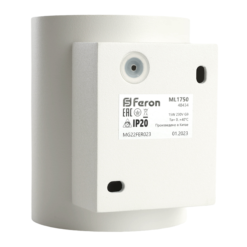 Светильник накладной под лампу, (-) FERON ML1750, G9 15W, 230V, IP20, цвет белый, корпус алюминий, 100*80*100