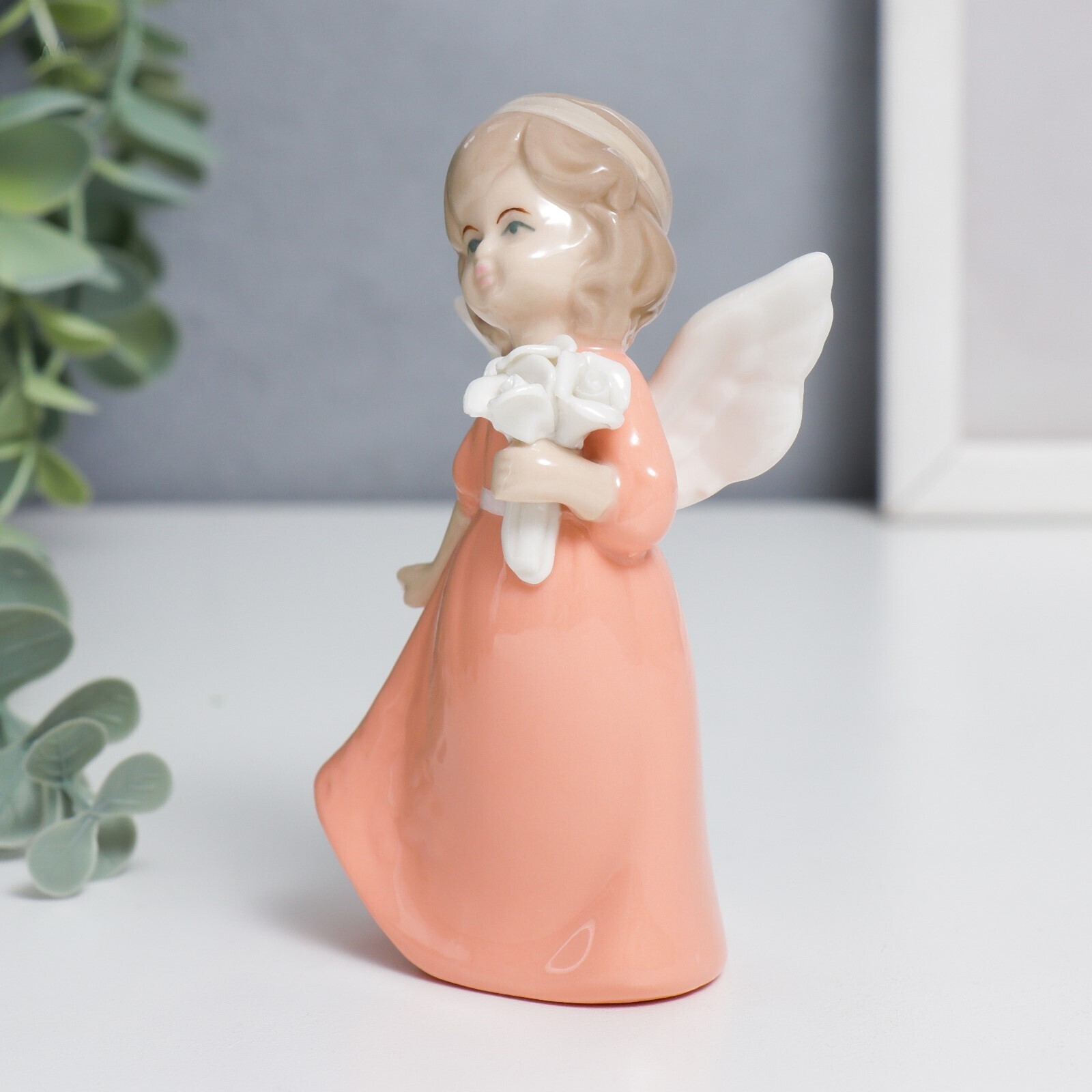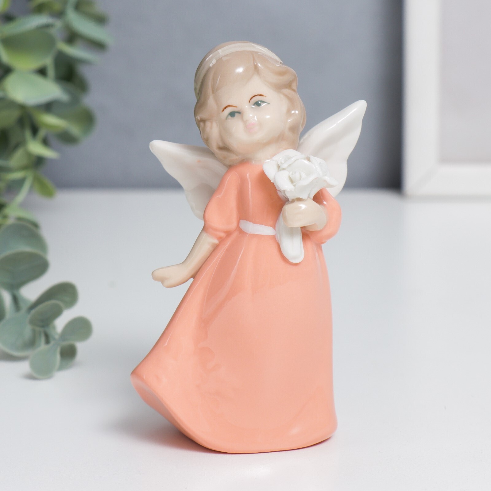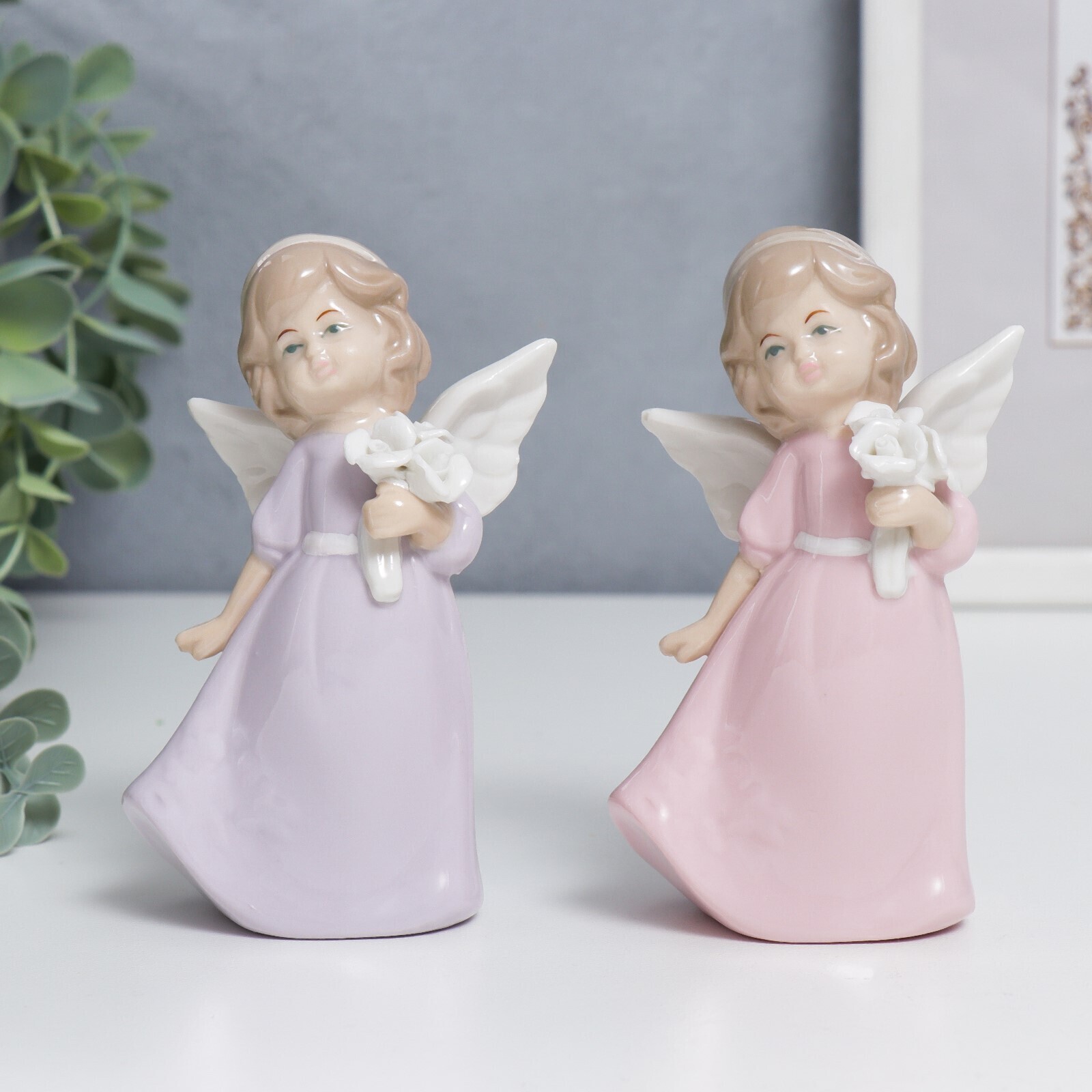 Сувенир керамика "Ангел-девочка в цветном платье с букетом" МИКС 11х6х4 см