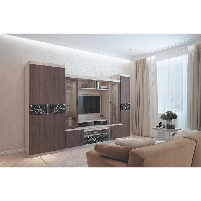 Гостиная "Николь", модуль центральный, 1076385930 мм, цвет ясень шимо светлый / тёмный