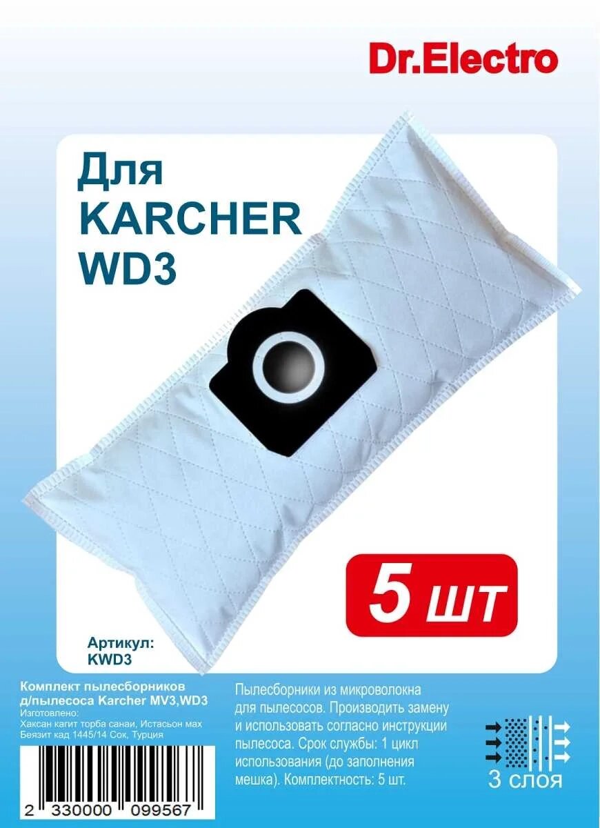 Комплект синтетических пылесборников для пылесоса Karcher MV 3, WD 3, SE4001