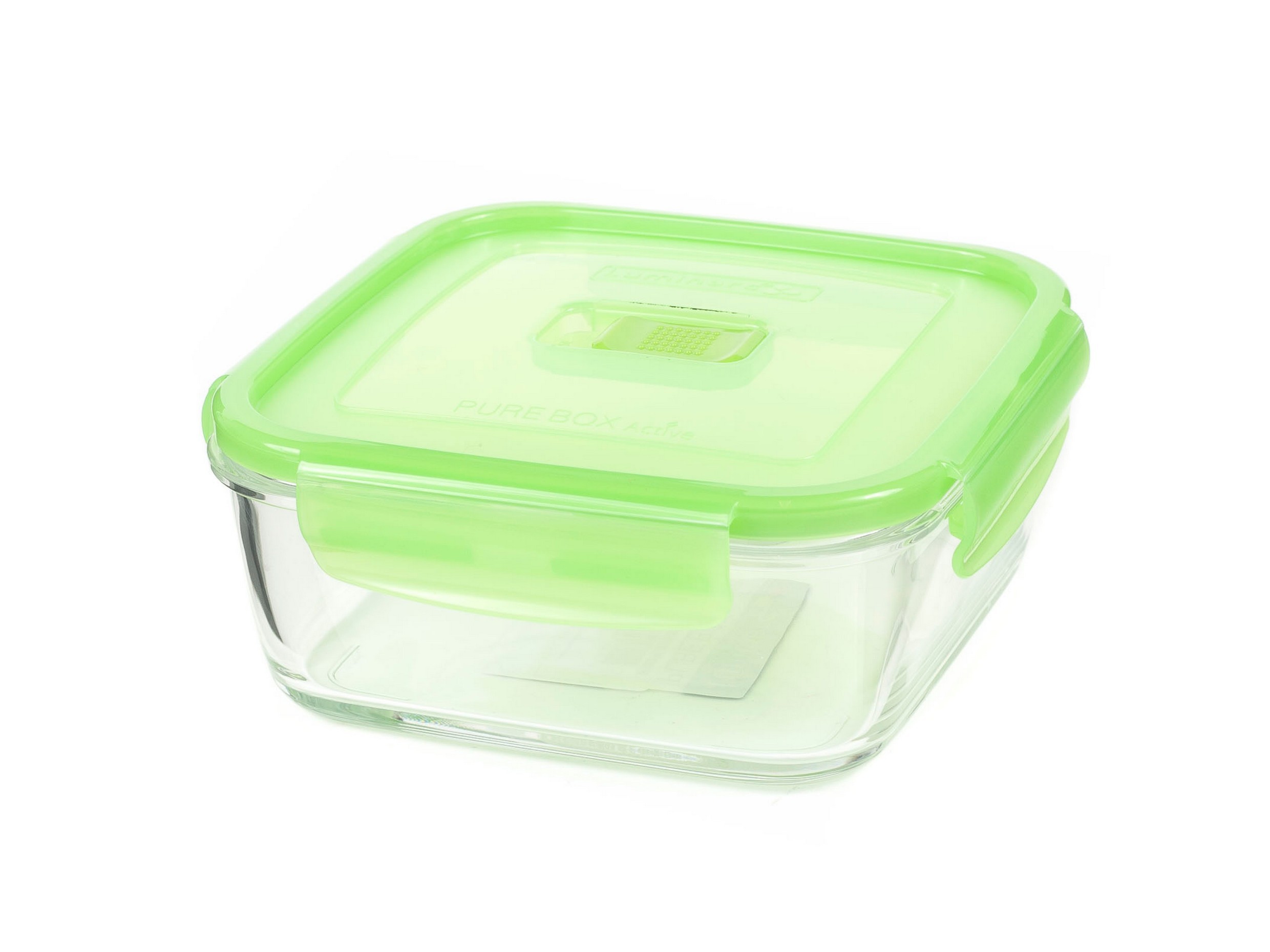 КОНТЕЙНЕР стеклянный “Purebox Active green” 1220 мл квадратный с пластмассовой крышкой (арт. P4574, код 157334)