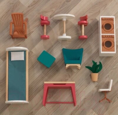 • В комплекте стол, лестница, кресло, стиральная машина, кресло-качалка, стул, пуфик, декоративный цветок, кровать