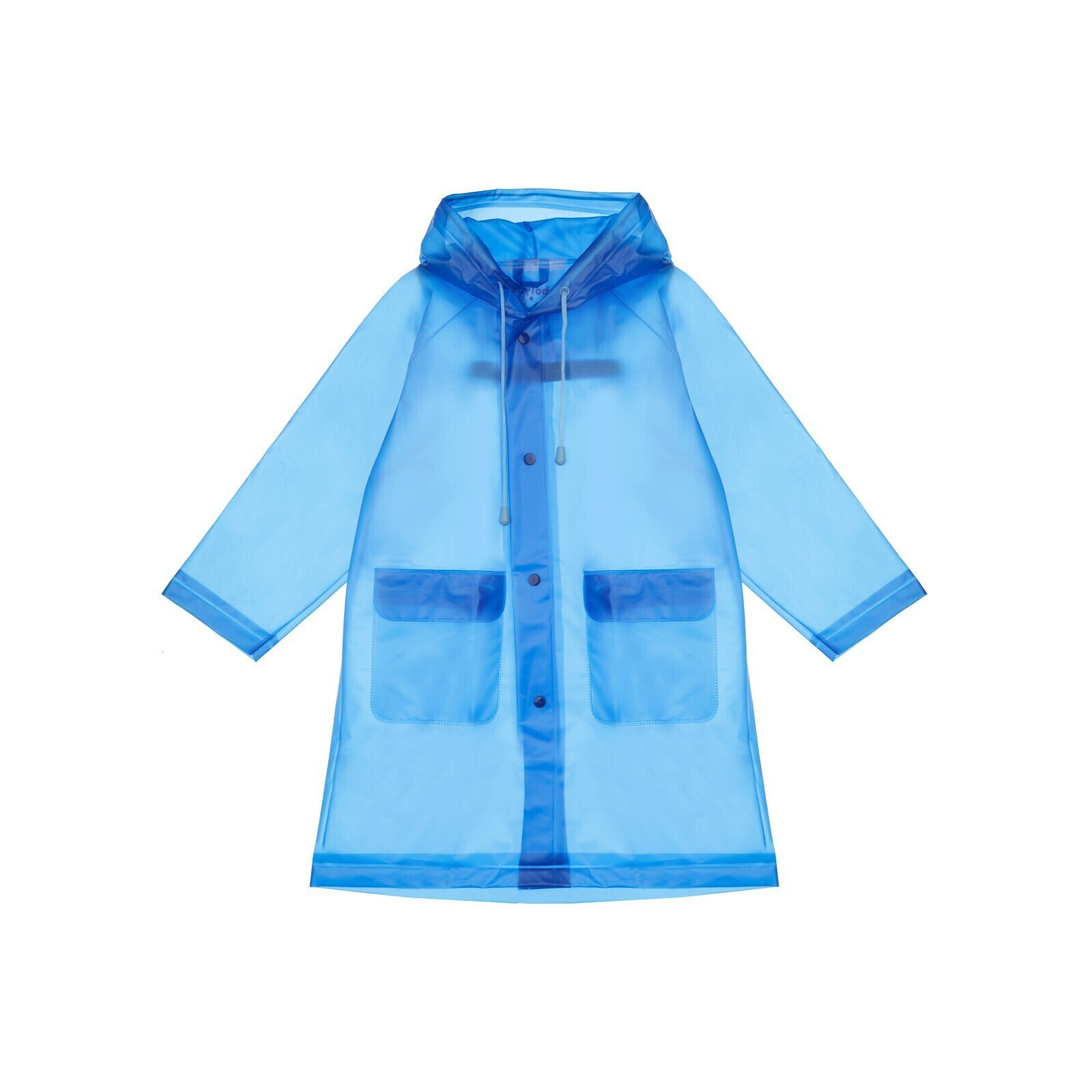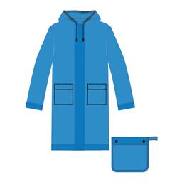 Плащ-дождевик с мешочком оптимальной длины, застёгивается на кнопки. Петельки под капюшоном с внешней стороны.